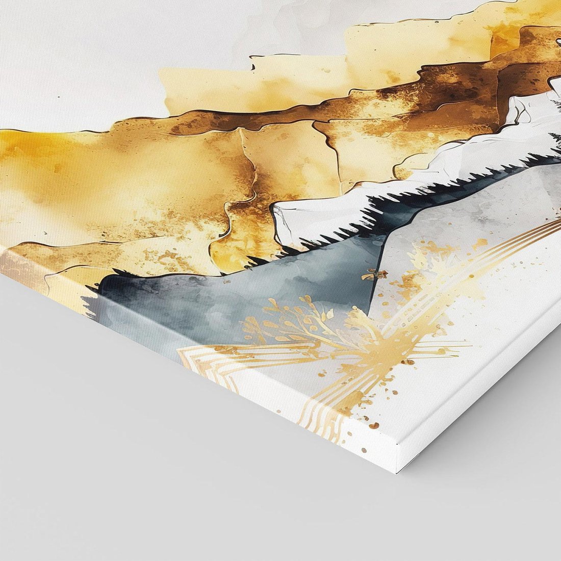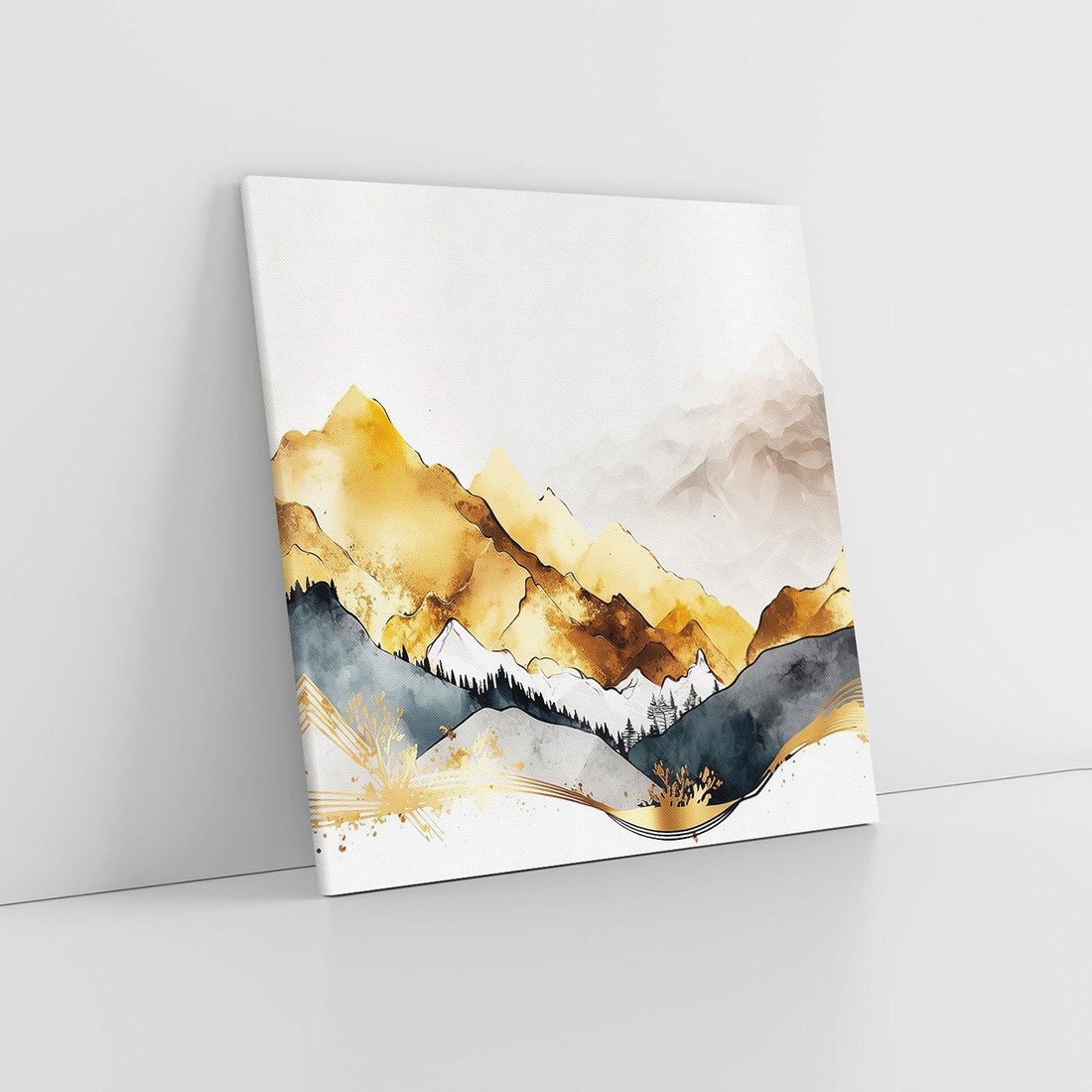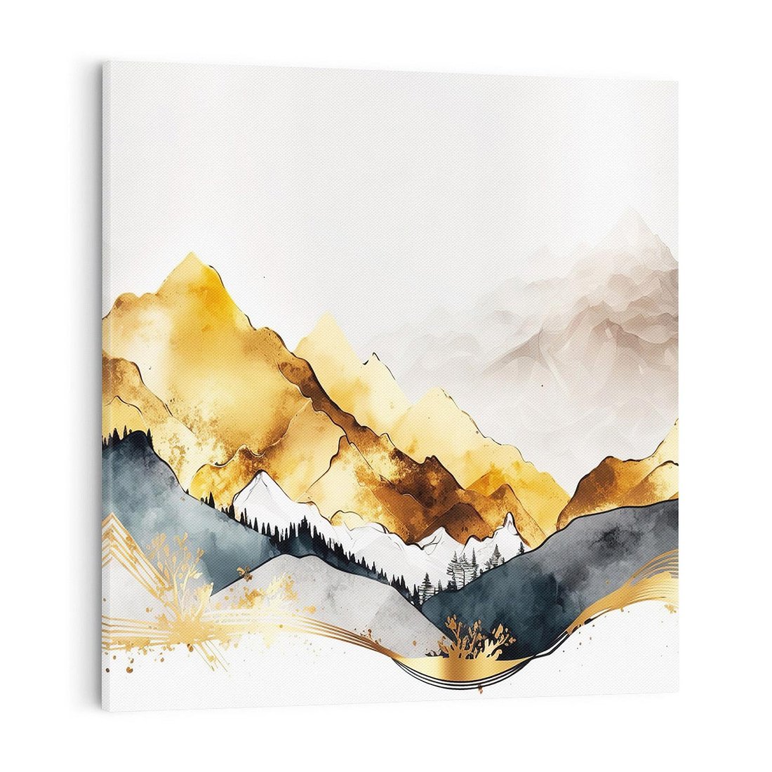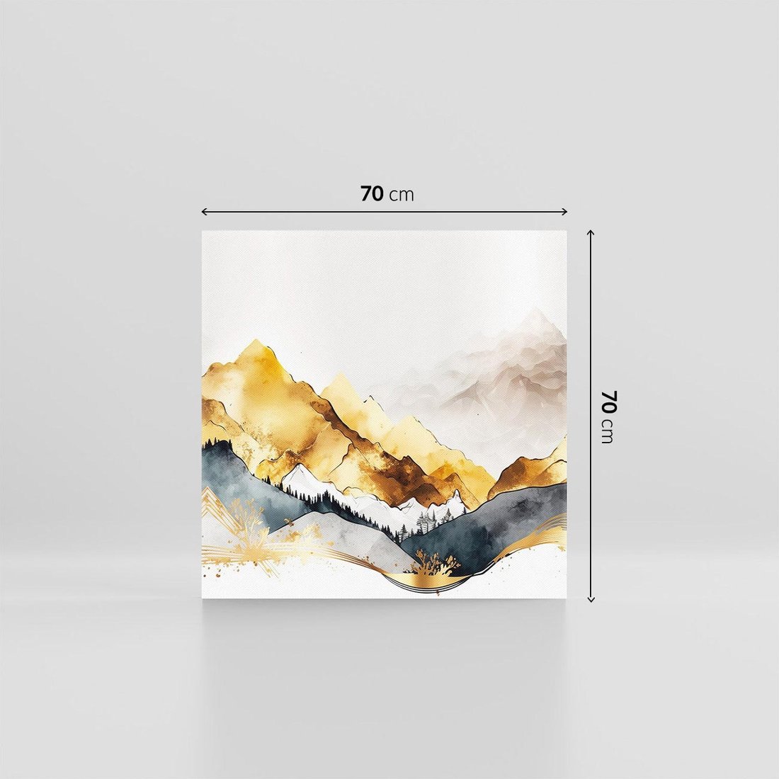 Obraz na płótnie 70x70 - Złote Góry - akwarela, graficzne góry