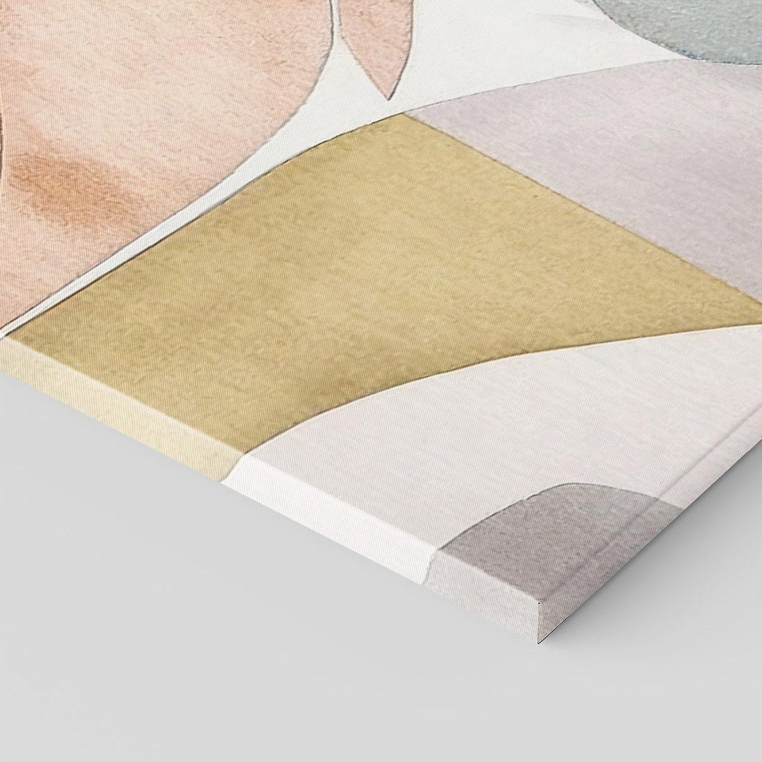 To unikatowy obraz w pastelowych akwarelach, gdzie kształty układają się w abstrakcyjne kompozycje. Odcienie beżu, turkusu i szarości tworzą harmonijną grę kolorów i form. To artystyczne dzieło dodaje przestrzeni lekkości i subtelnego piękna, zachęcając do odkrywania różnorodnych interpretacji i emocji.
