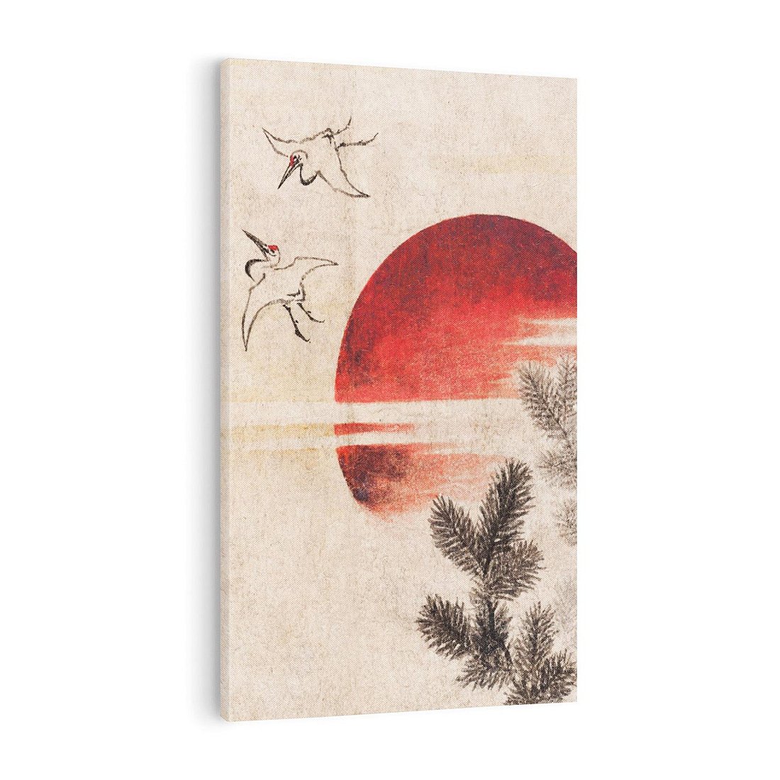 - Obraz na płótnie 80x120 - "Birds and sunset" Katsushiki Hokusai - Reprodukcja