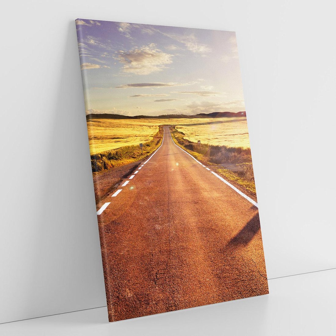 Obraz na płótnie 80x120 - Droga ku zachodowi słońca - droga, zachód