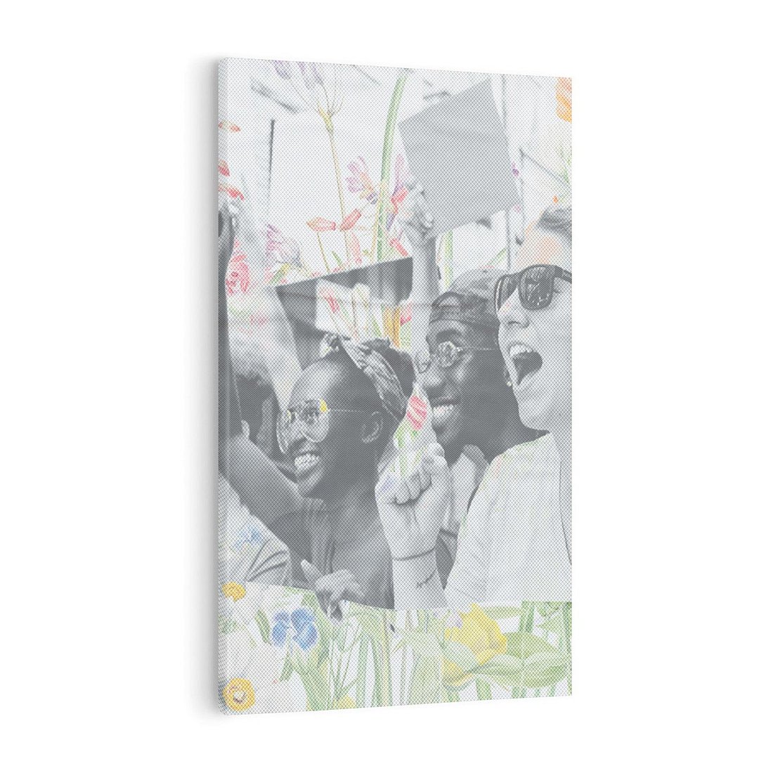 Obraz na płótnie 80x120 - Księga zaklętych marzeń - kolaż, czarnobiałe zdjęcie wesołych młodych ludzi