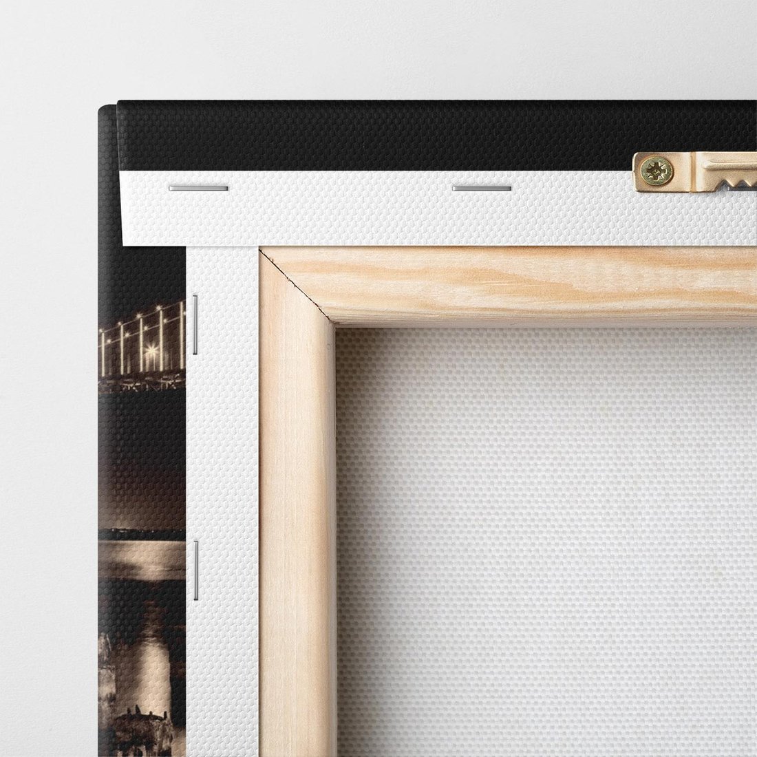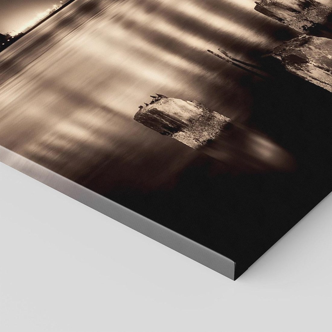 Ten nastrojowy obraz przedstawia most oświetlony nocnym światłem, a jego odbicie rozmazuje się na powierzchni rzeki. Ciesz się widokiem magicznej atmosfery nocnego krajobrazu i dodaj nutę tajemnicy i romantyzmu do swojego wnętrza tym wyjątkowym obrazem.