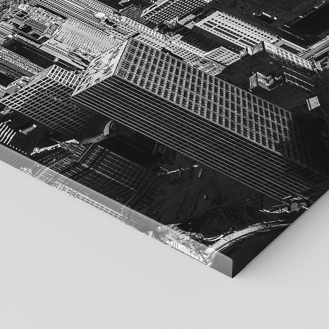 Ten dynamiczny obraz przedstawia wspaniałą panoramę miasta, gdzie wieżowce wznoszą się w niebo. Odkryj piękno architektury miejskiej i energię życia miejskiego tym wyjątkowym obrazem, który dodaje charakteru i stylu Twojemu wnętrzu.