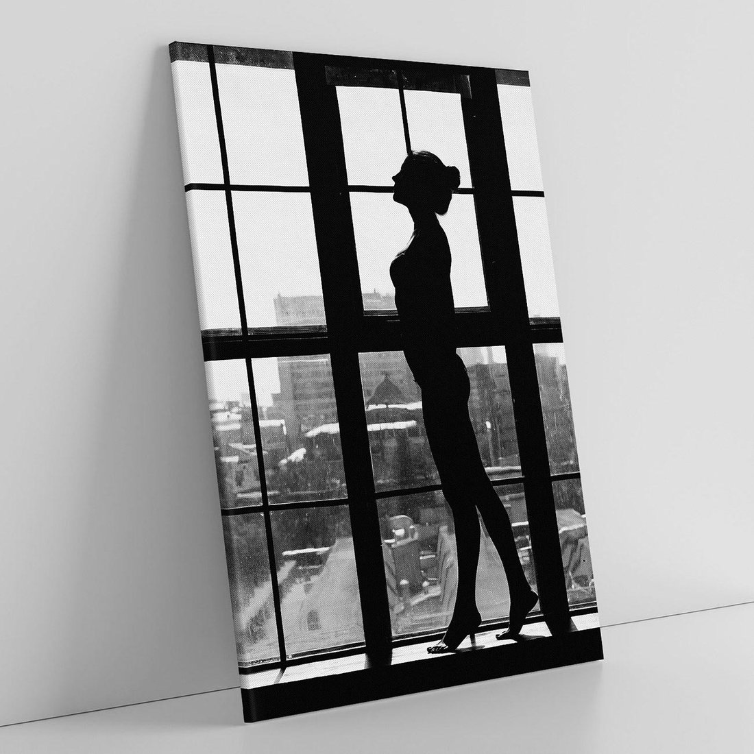 To ujęcie to klasyczne czarno-białe retro zdjęcie ukazujące piękną kobietę stojącą przed oknem. Jej piękna sylwetka kontrastuje z tłem, tworząc atmosferę nostalgii i elegancji. To zdjęcie jest hołdem dla stylu retro i epoki, która kultywowała klasykę i wdzięk. Idealnie nadaje się jako dekoracja do wnętrz urządzonych w klasycznym lub retro stylu, dodając im wyjątkowy urok i atmosferę przeszłości. To także hołd dla piękna ludzkiego ciała i jego wyrazistości, które transcenduje czas.