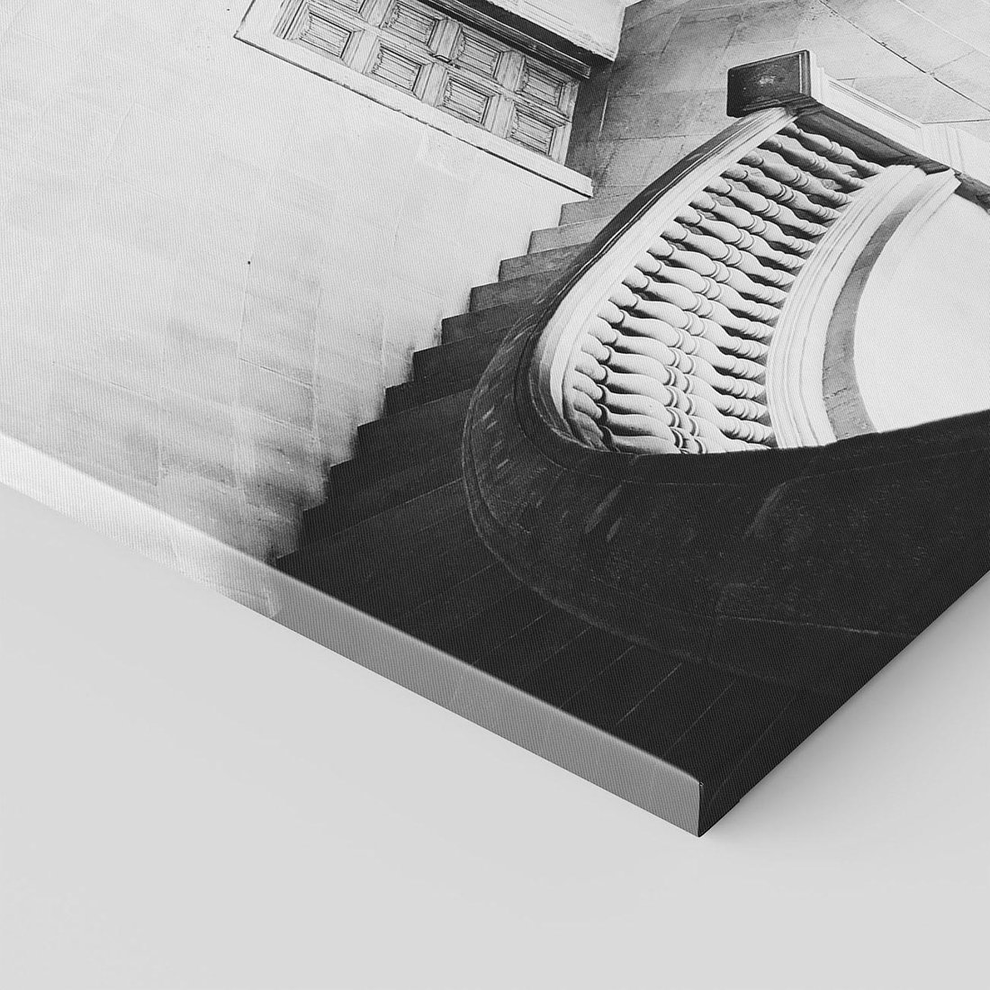 Obraz na płótnie 80x120 - Po Schodach w Dół - czarno białą fotgrafia, zakręcone schody w starek kamienicy