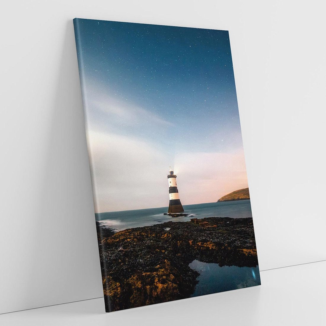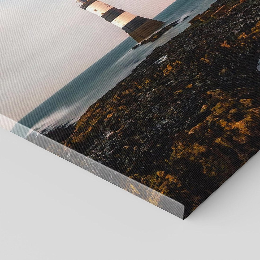 Obraz na płótnie 80x120 - Zachód słońca nad morzem: Magia plażowej scenerii - latarnia morska, morze