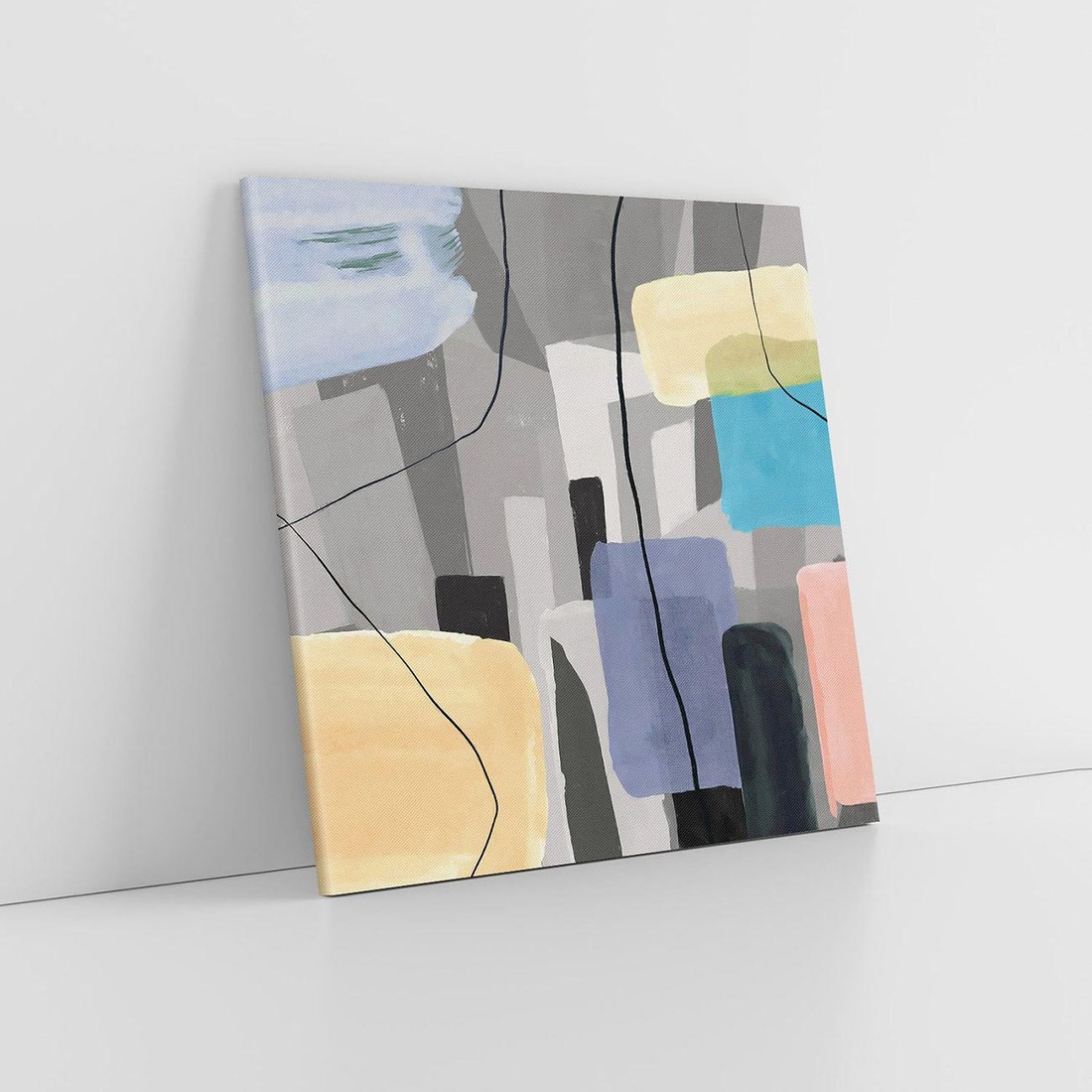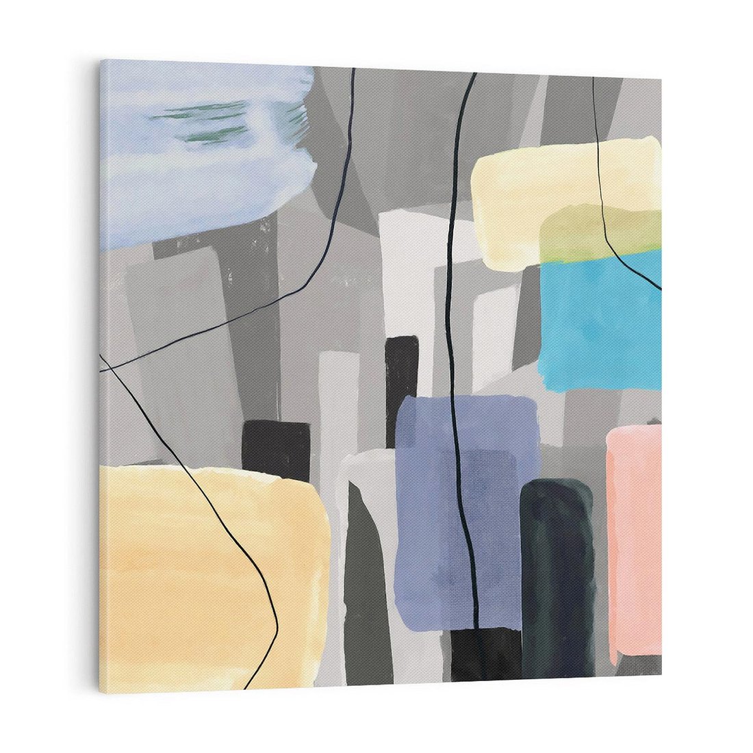 Obraz na płótnie 80x80 - Harmonia w chaosie serca - abstrakcja na szarym tle, kolorowe plamy koloru