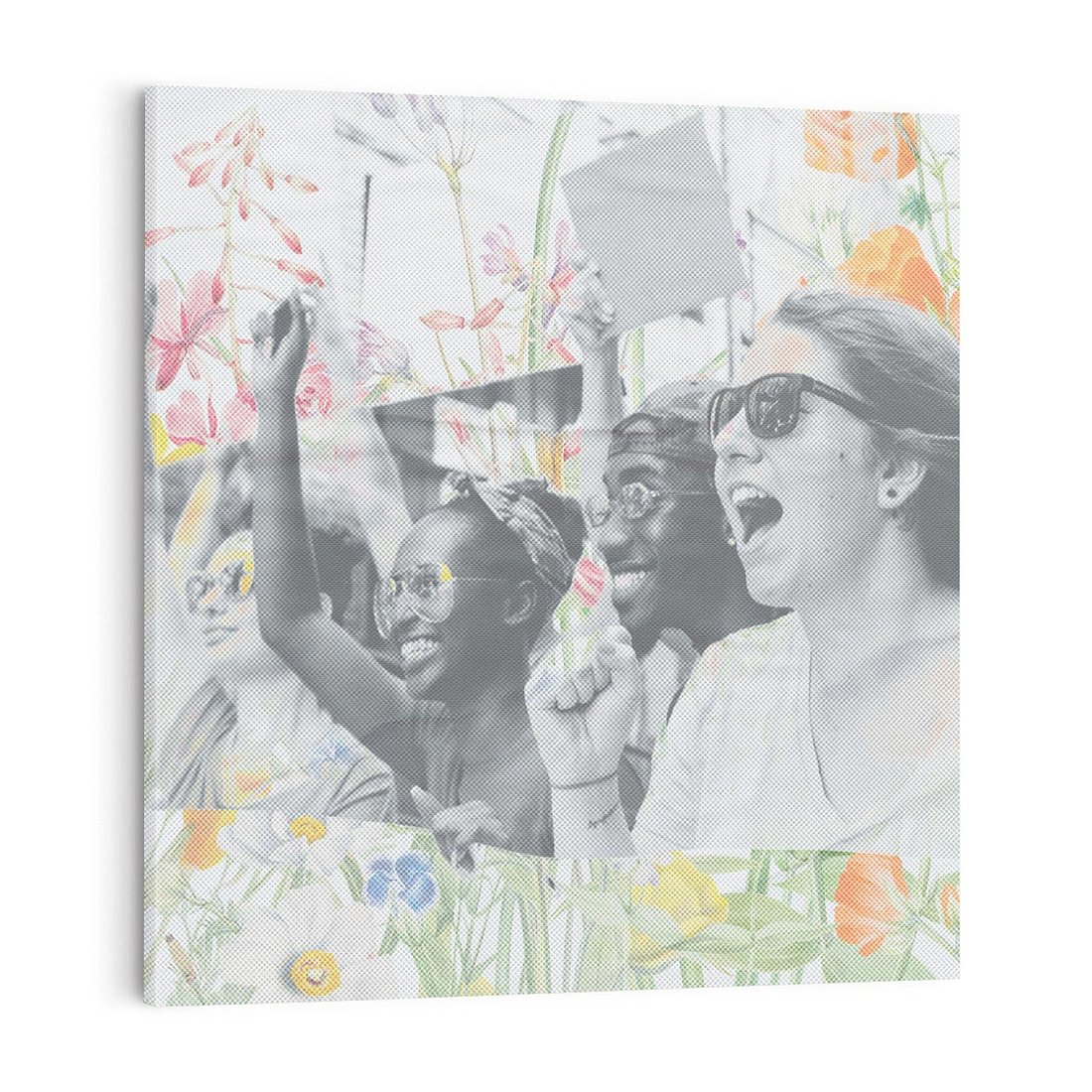 Obraz na płótnie 80x80 - Księga zaklętych marzeń - kolaż, czarnobiałe zdjęcie wesołych młodych ludzi