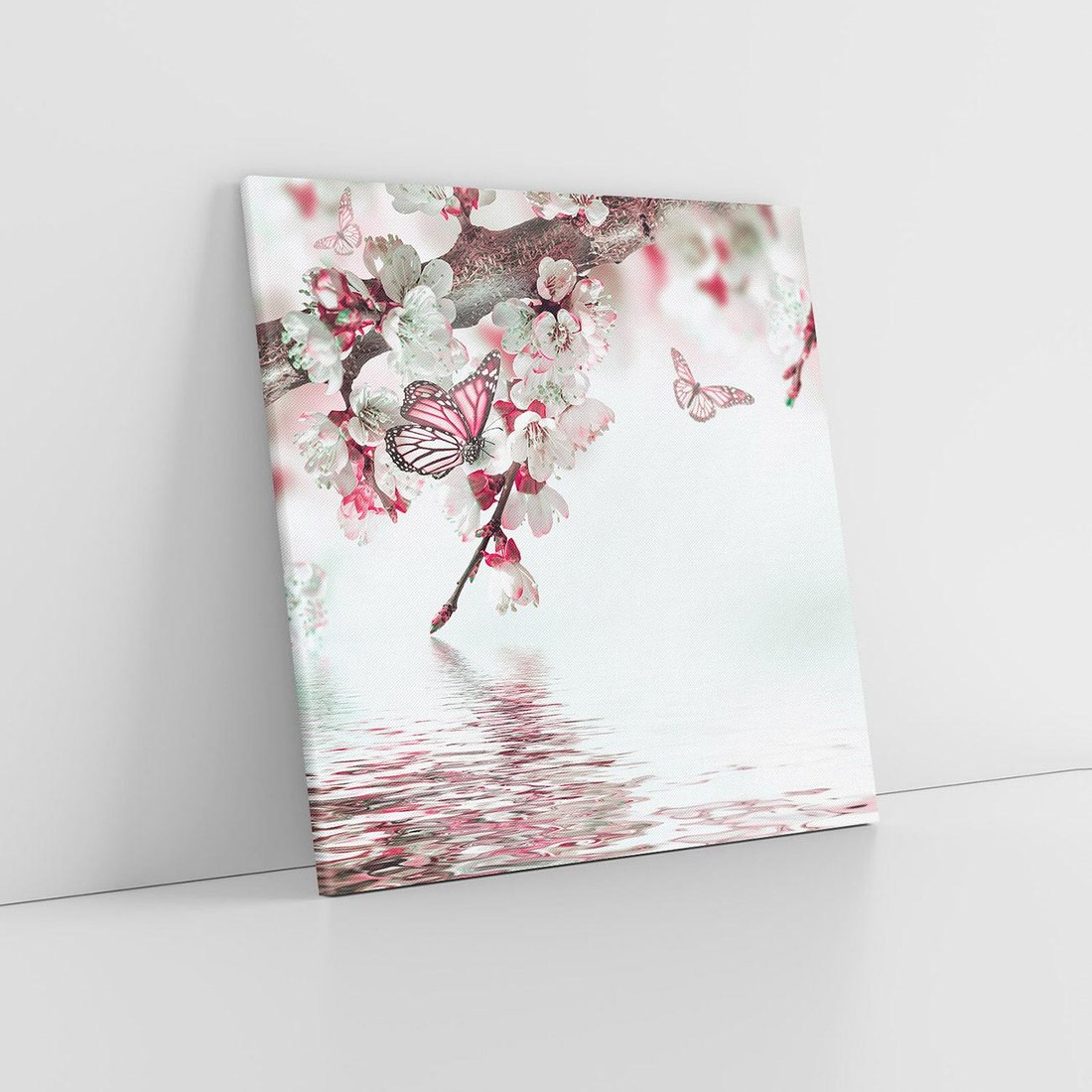 - Obraz na płótnie 80x80 - Kwiatowa baśń z motylami
