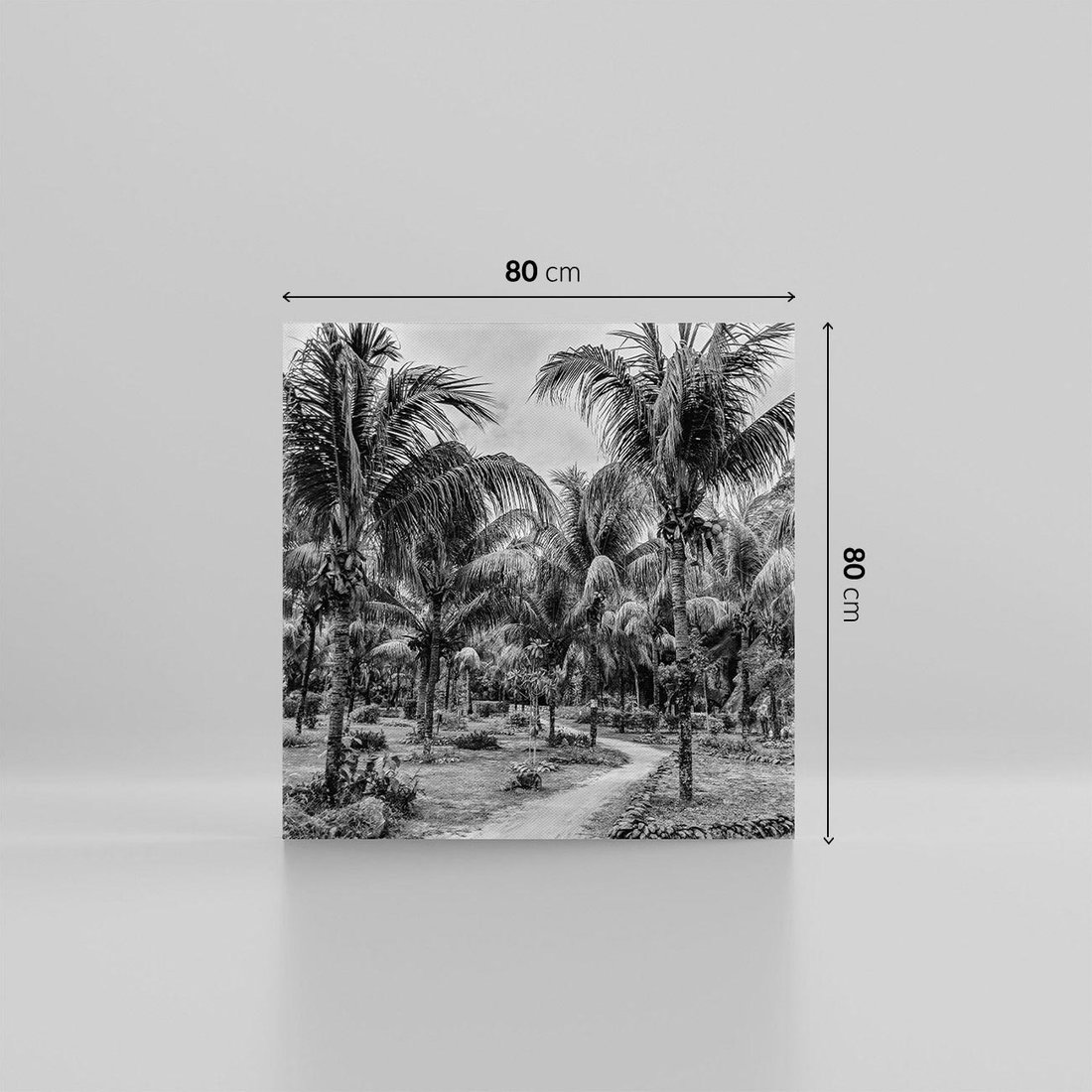 Obraz na płótnie 80x80 - Mroczna Ścieżka Tropików - czarno biała fotografia, ścieżka pośród palm