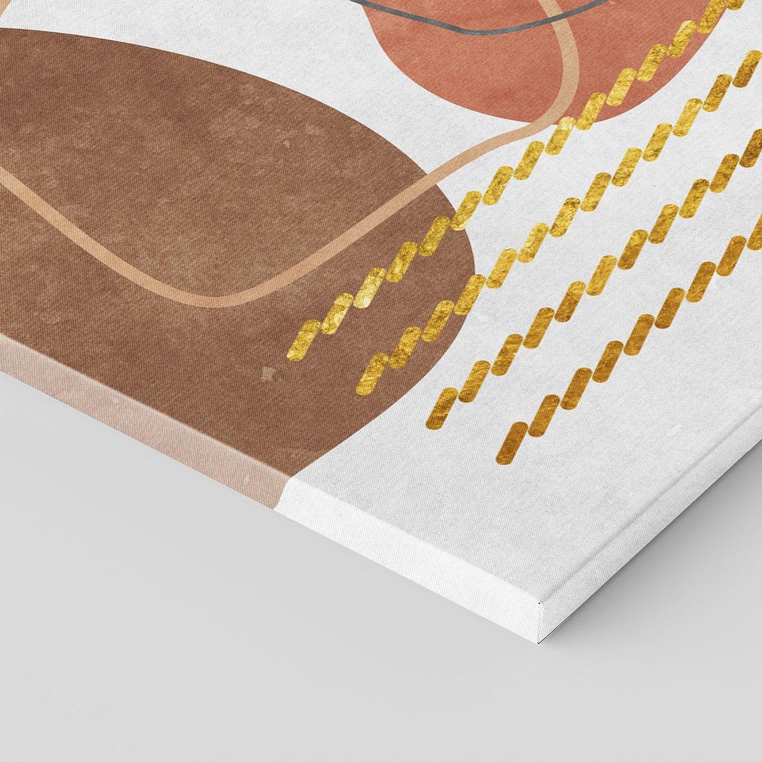 Zapraszamy do odkrycia magicznego obrazu w stylu boho, gdzie abstrakcyjne rozlane plamy ożywiają płótno. Złote zygzaki dodają mu wyjątkowej elegancji. Ciepłe odcienie rudości i brązów emanują harmonią natury. To dzieło sztuki stworzone dla miłośników oryginalnych dekoracji, pragnących wprowadzić artystyczną duszę do swoich wnętrz.