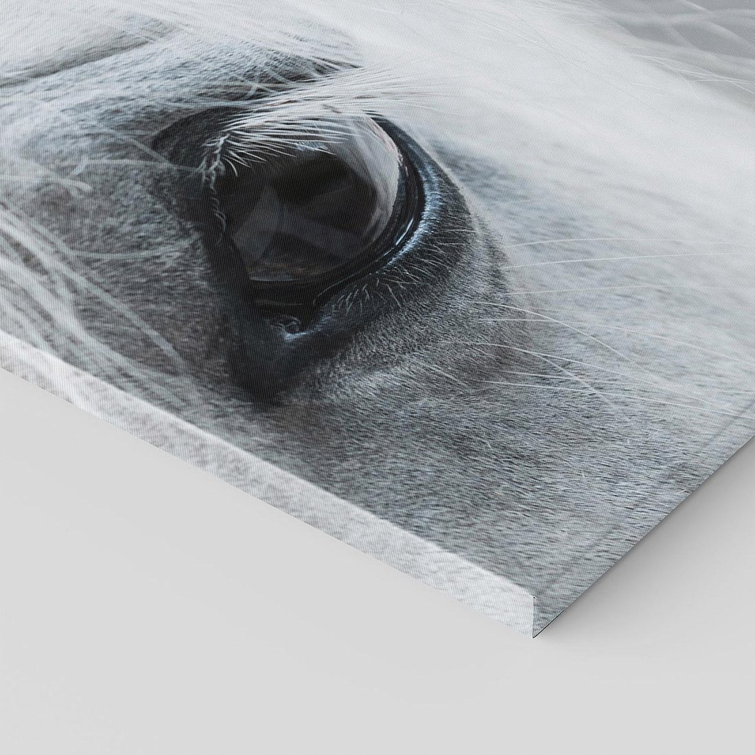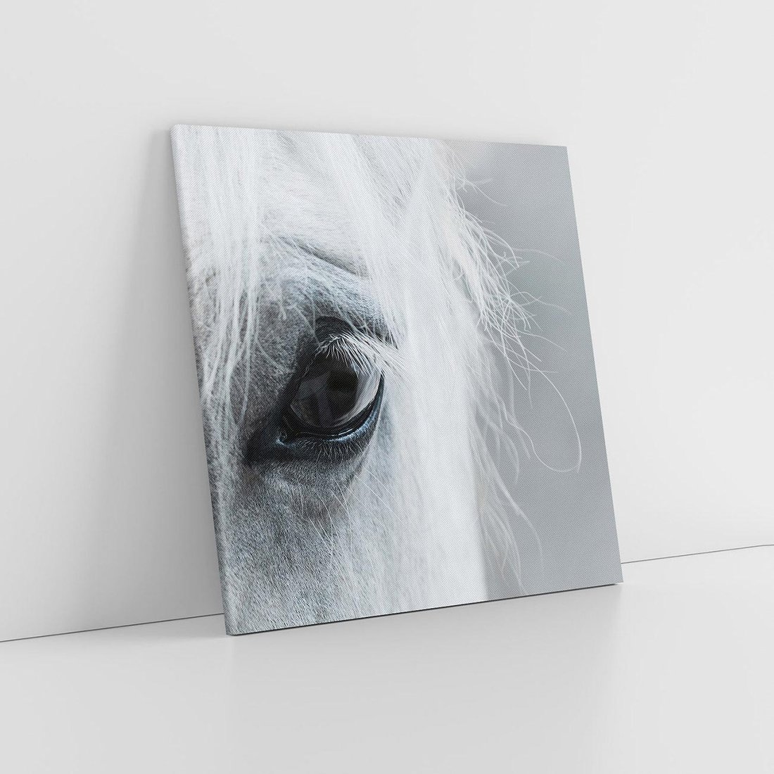 Obraz na płótnie 80x80 - Oko Mocy - czarno białe zdjęcie, zbliżenie makro na oko konia