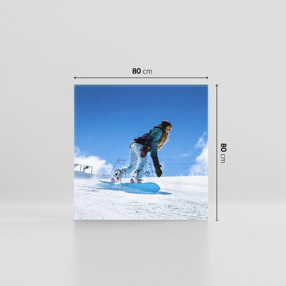 - Obraz na płótnie 80x80 - Snowboard na zimowych zboczach