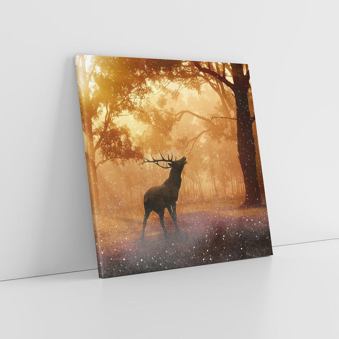 - Obraz na płótnie 80x80 - Spotkanie jelena w lesie