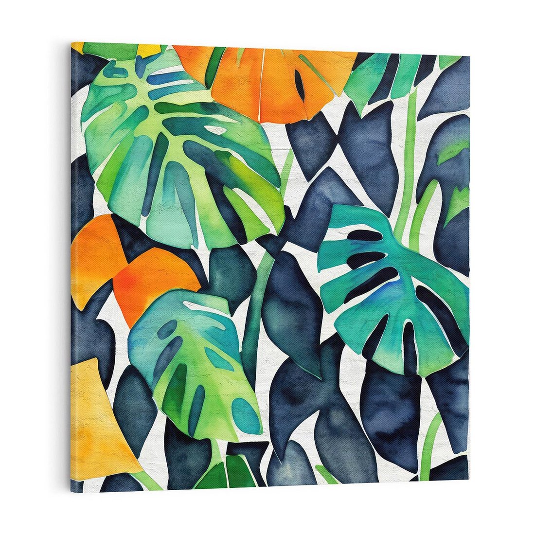 Obraz na płótnie 80x80 - Tropikalne Pragnienia - akwarela, liście tropikalne