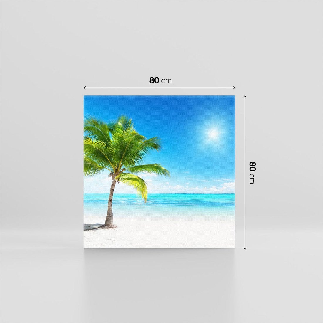 - Obraz na płótnie 80x80 - Wakacyjne uniesienie: plaża i palma