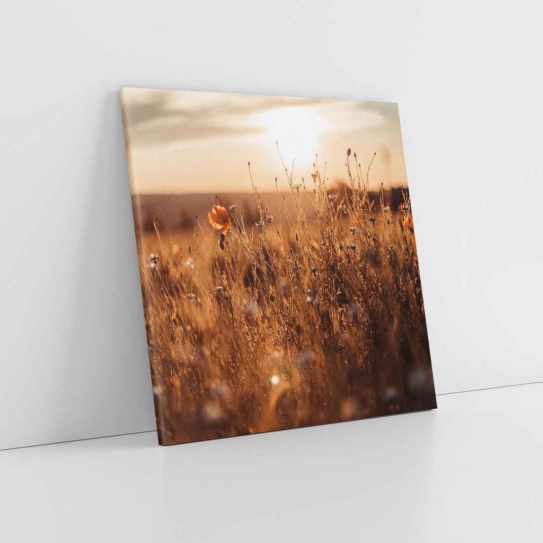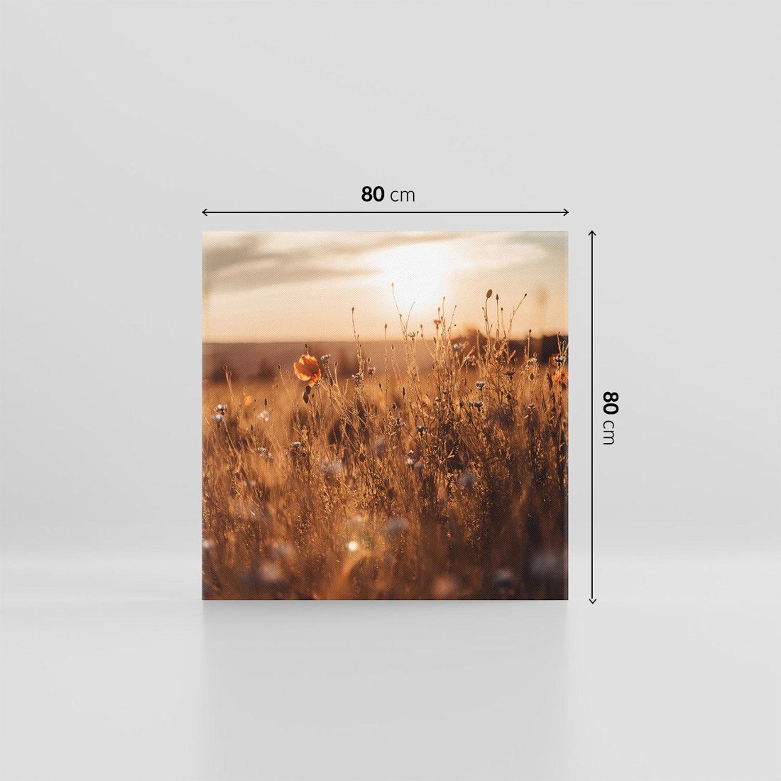 - Obraz na płótnie 80x80 - Zachwyt zachodem słońca na łące