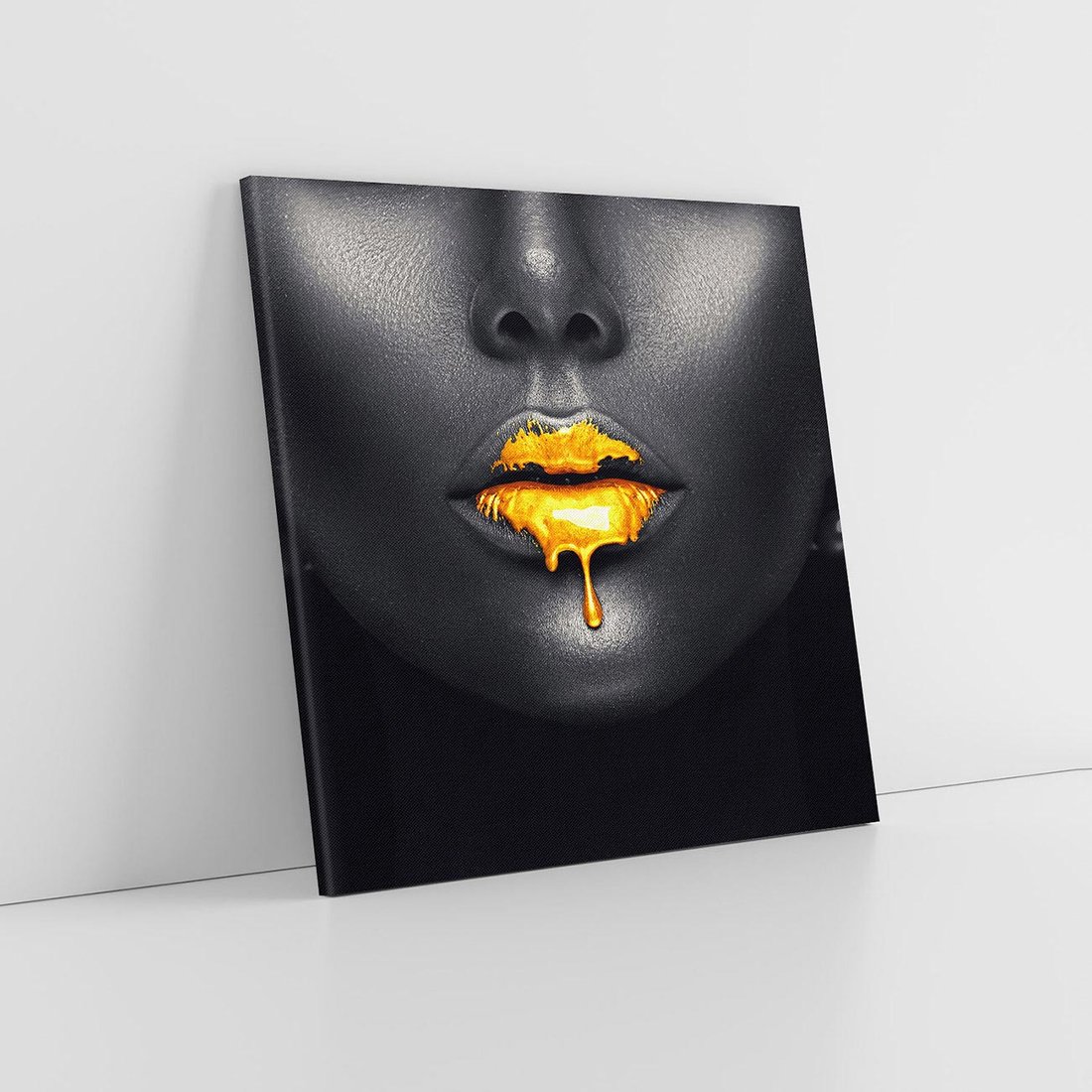 Obraz na płótnie 80x80 - Złote Usta Kobiety - złote, usta