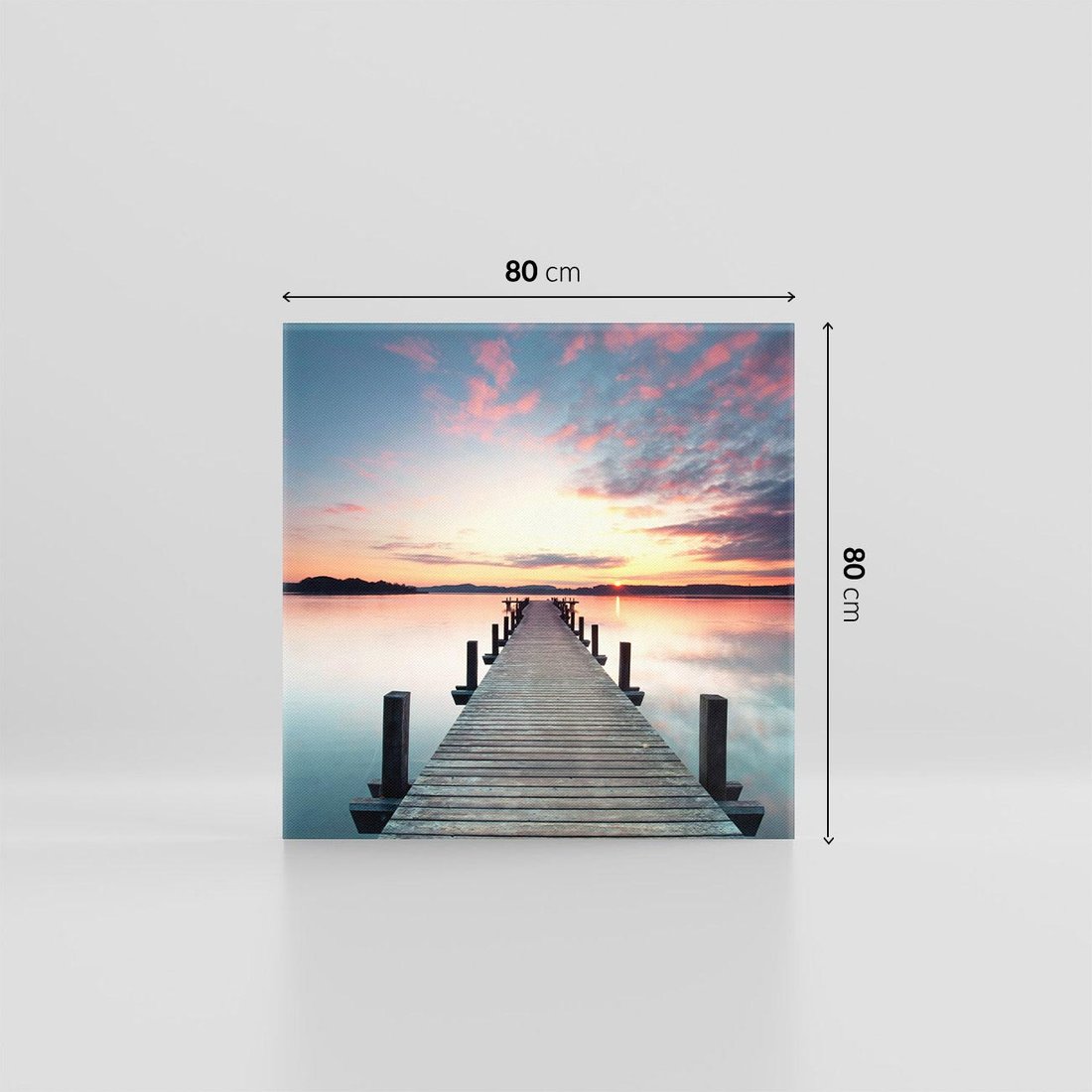 Obraz na płótnie 80x80 - Złote zachody słońca - jezioro, molo
