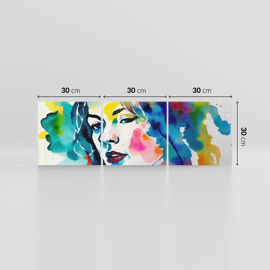 Czarna kreska w abstrakcyjnym portrecie kobiety jest delikatną osią, która kontrastuje z ekspresyjnymi akwarelowymi plamami rozpryśniętymi na płótnie. To zmysłowe połączenie wydobywa osobowość i emocje postaci , tworząc fascynujący taniec formy i koloru.