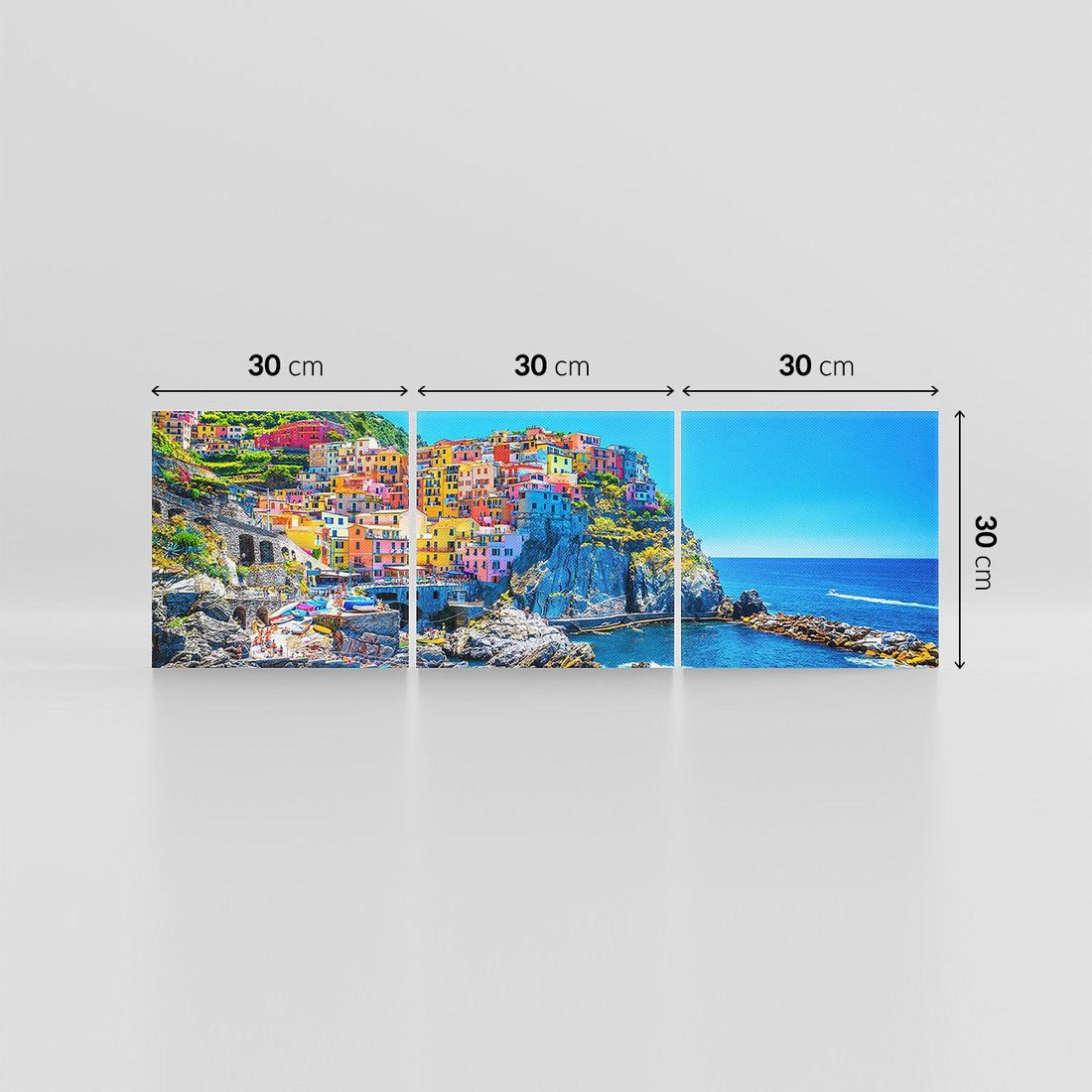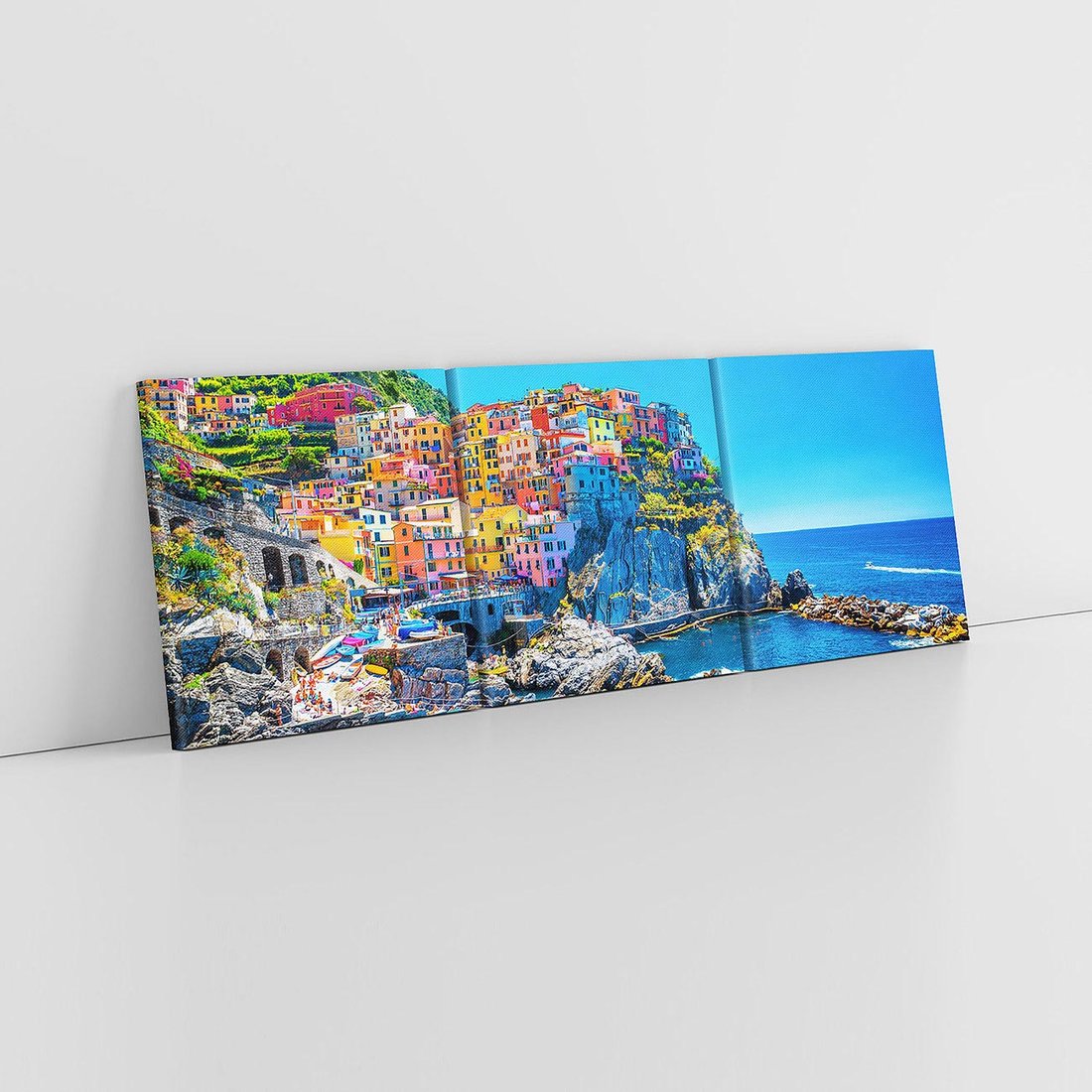 Obraz na płótnie 90x30 - Barwne Wybrzeże - nadmorskie miasto na klifie, kolorowe tęczowe budynki