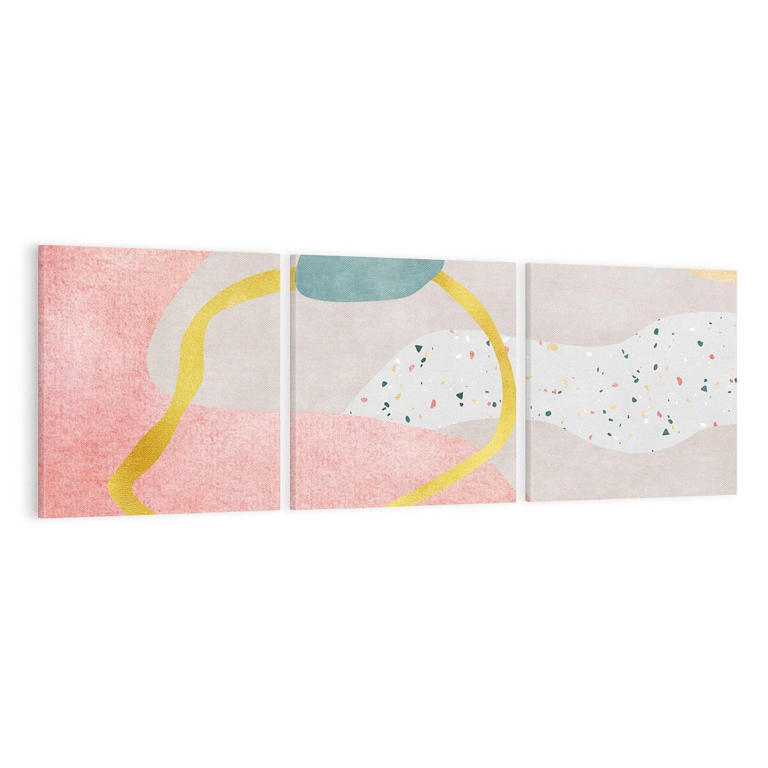 Odkryj fascynujący obraz abstrakcji, łączący kształty i dziwne formy, które harmonijnie współgrają z różnymi teksturami, przypominającymi lastryko. Złote akcenty subtelnie podkreślają różowy i szary kolor. To wyjątkowe dzieło stworzone dla miłośników sztuki poszukujących unikalnych kompozycji, które wzbudzą ciekawość i zachwyt. Doskonały dodatek do nowoczesnych i ekskluzywnych wnętrz.