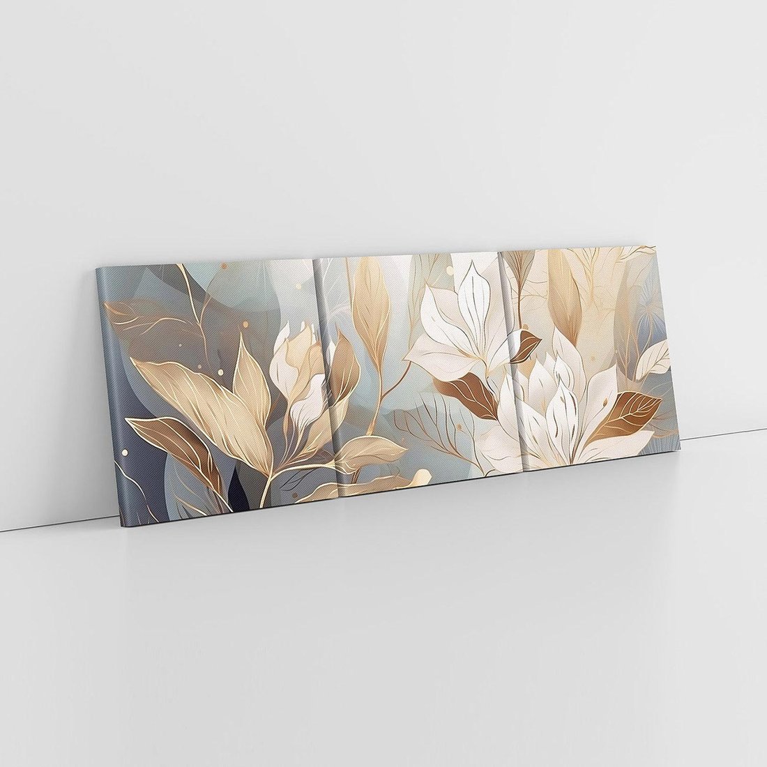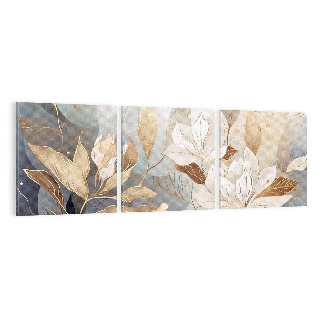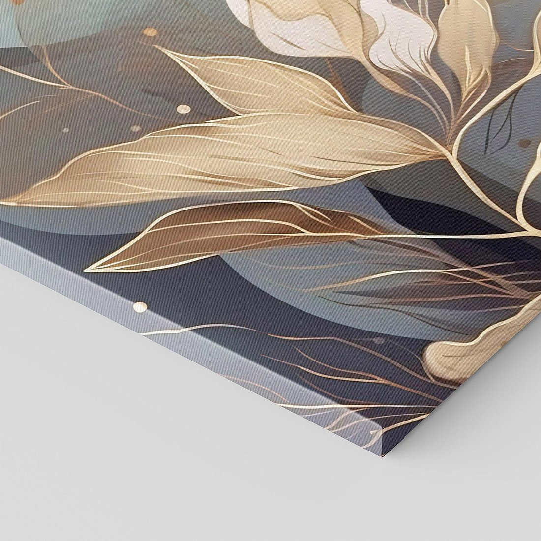 Ta nowoczesna grafika przedstawia złote kwiaty, które rozkwitają w blasku światła. Ich piękno i elegancja doskonale pasują do wnętrz glamour, dodając im wyjątkowego charakteru. To artystyczne dzieło sztuki wprowadza luksusowy akcent do Twojego wnętrza, zachwycając oryginalnością i złotym blaskiem.