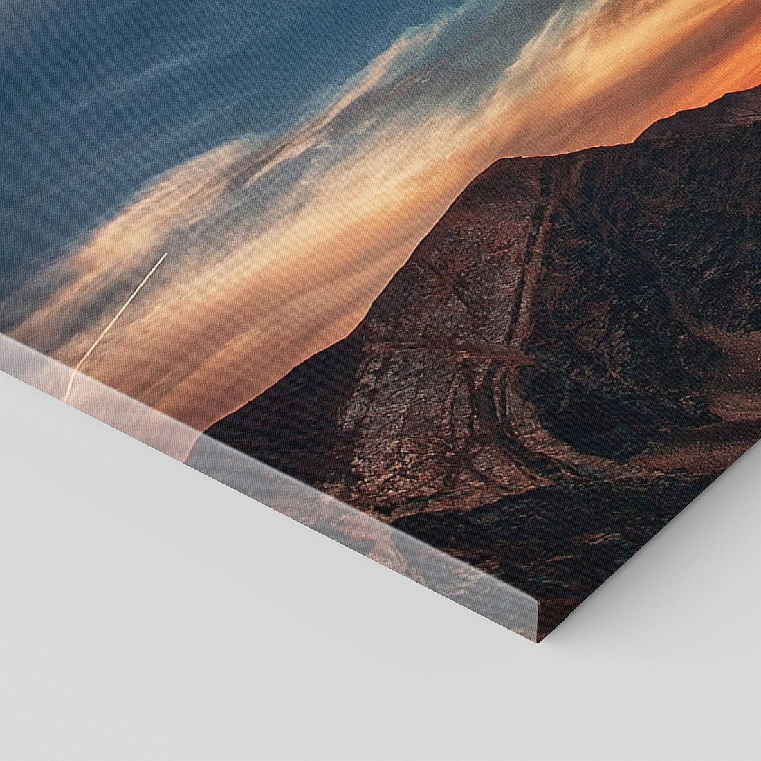 Inspirujący obraz na płótnie ukazujący góry otoczone pięknym krajobrazem. Wykorzystanie kolorów i detali oddaje wspaniałość przyrody, tworząc harmonijną atmosferę.
