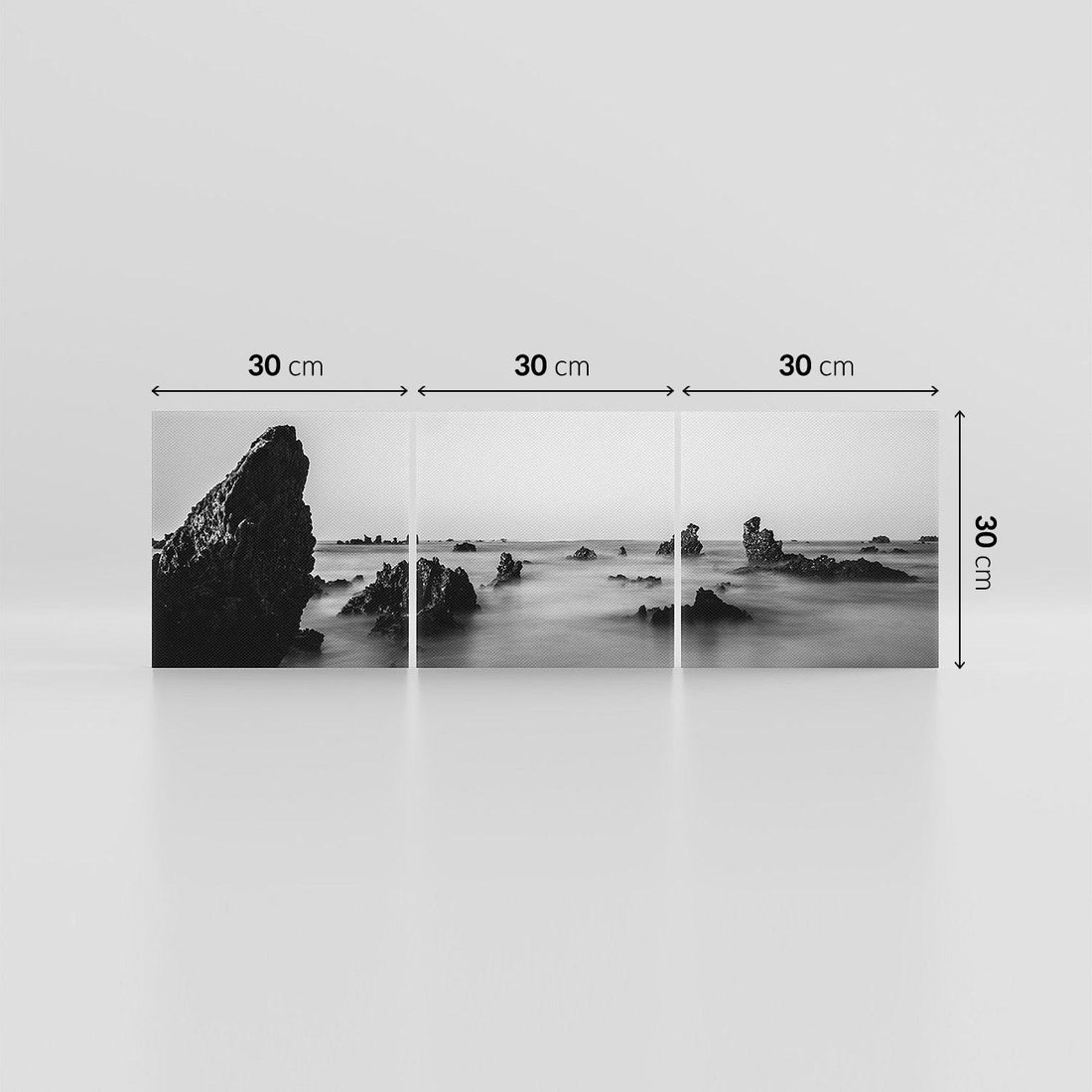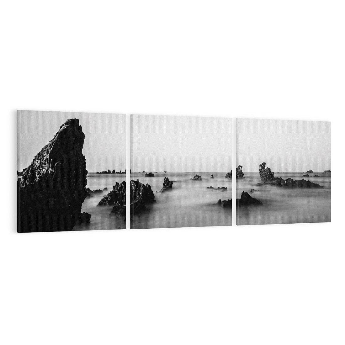 Obraz na płótnie 90x30 - Harmonia świateł i cieni - zamglona dzika plaża, skały na plaży