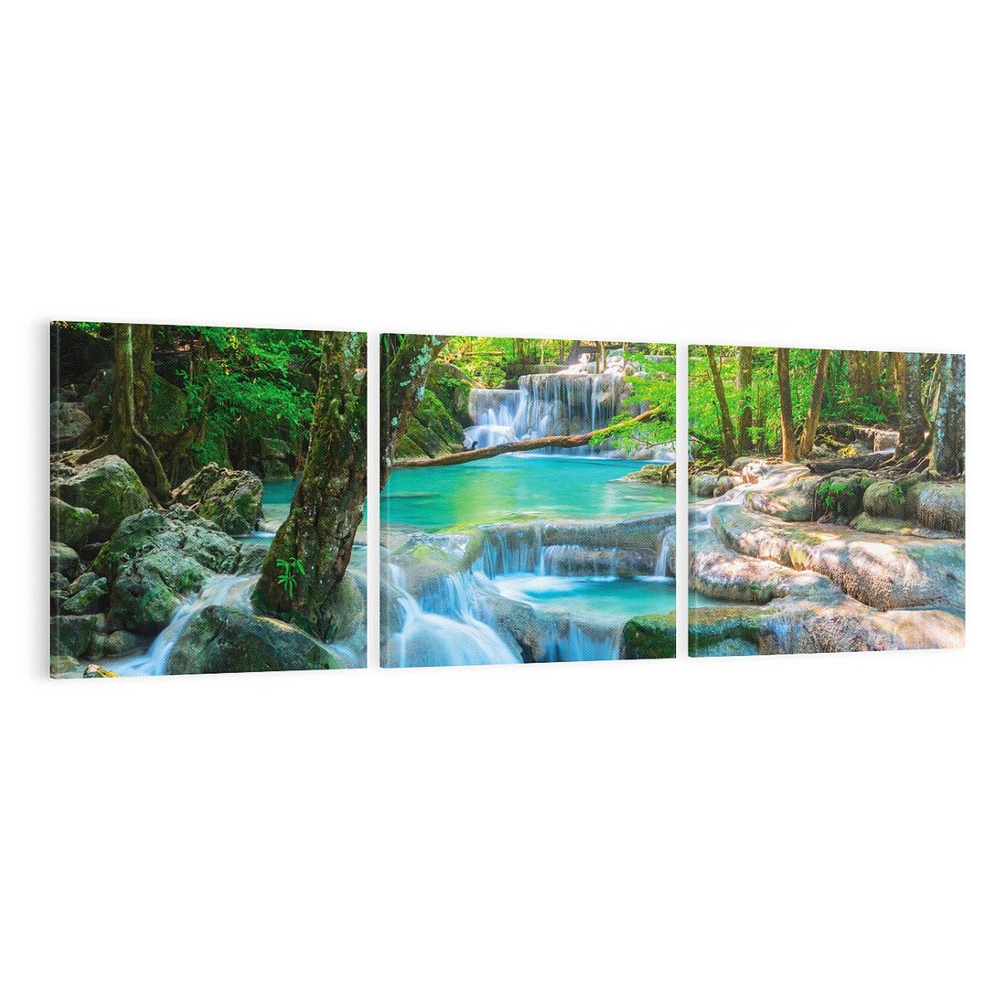 Obraz na płótnie 90x30 - Magia w lesie nad rzeką - wodospad, rzeka