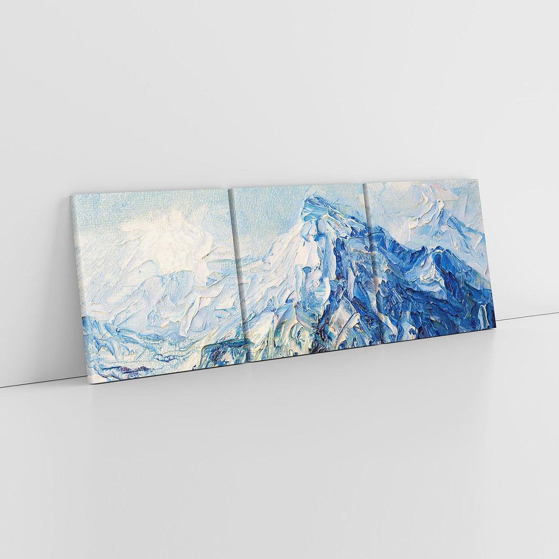 Obraz na płótnie 90x30 - Majestat Błękitnych Szczytów - olejny obraz, górski pejzaż