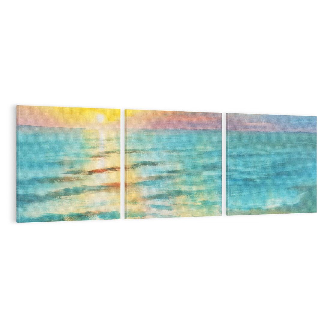 Obraz na płótnie 90x30 - Objawienie Fioletowego Świtu - fioletowy wschód słońca, słońce wschodzi nad morzem
