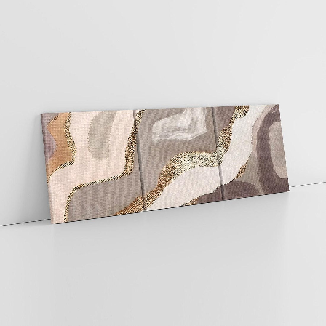 Ten obraz na płótnie to piękne dzieło sztuki abstrakcyjnej, które oczaruje każdego. Wykonany jest w neutralnych kolorach, takich jak beż, złoto i brąz, a jego miękkie falowane linie tworzą wrażenie ruchu i energii. Obraz będzie idealnym uzupełnieniem każdego wnętrza, nadając mu elegancji i szyku.
