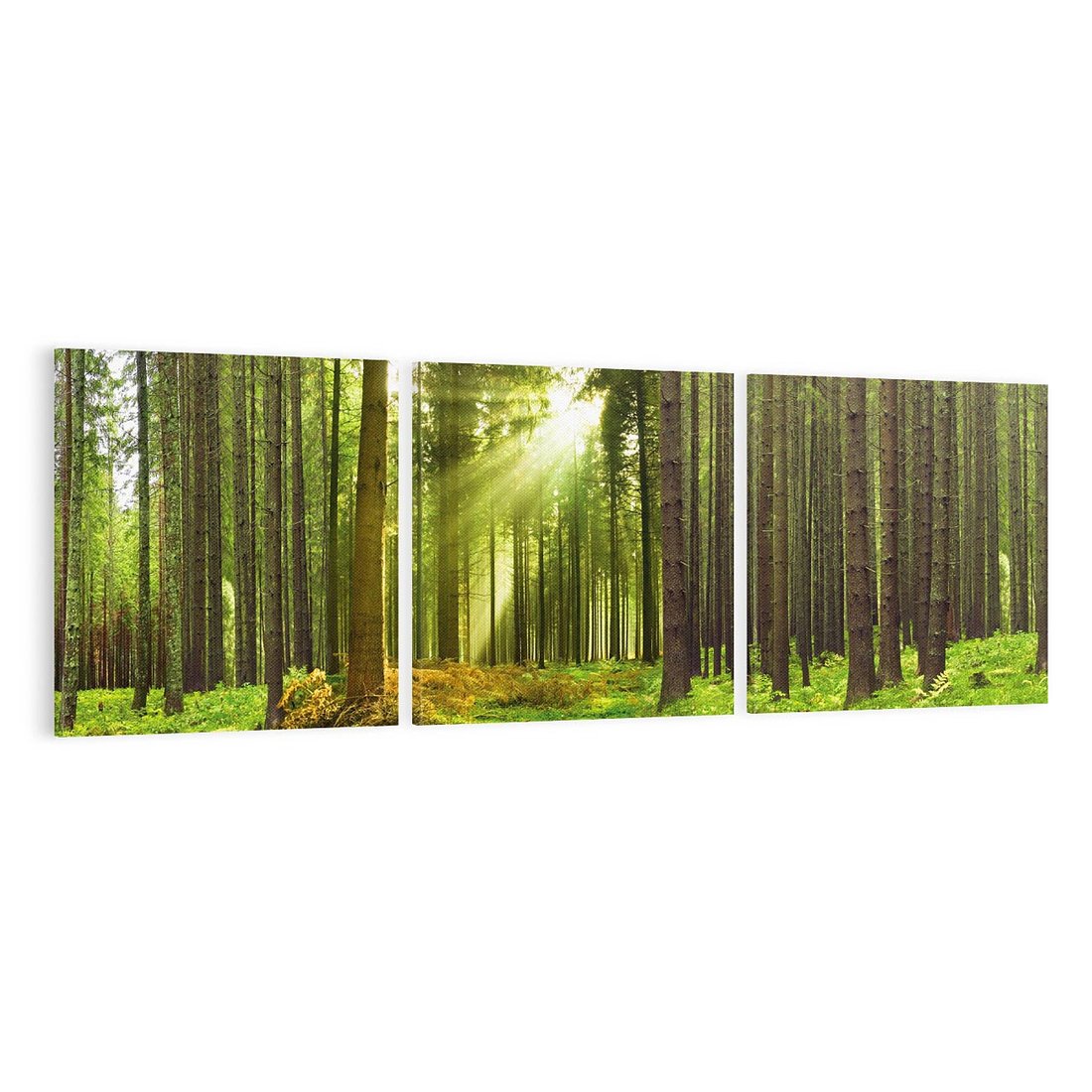 - Obraz na płótnie 90x30 - Spokój wśród drzew: las w odcieniach zieleni
