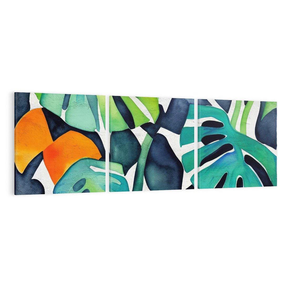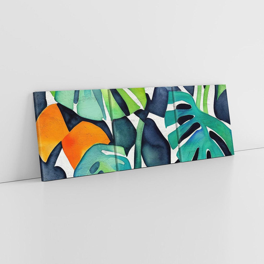 Obraz na płótnie 90x30 - Tropikalne Pragnienia - akwarela, liście tropikalne
