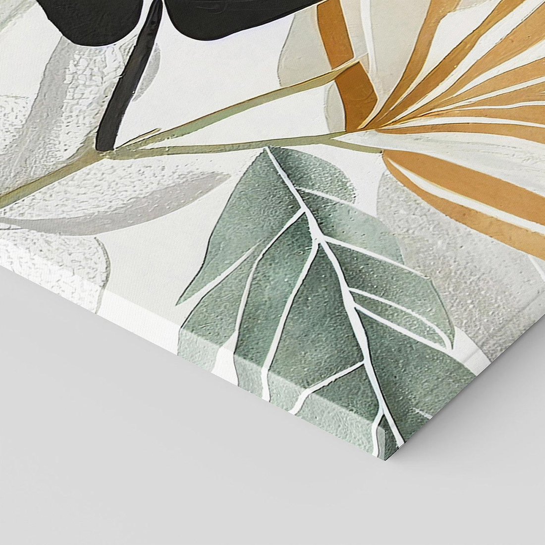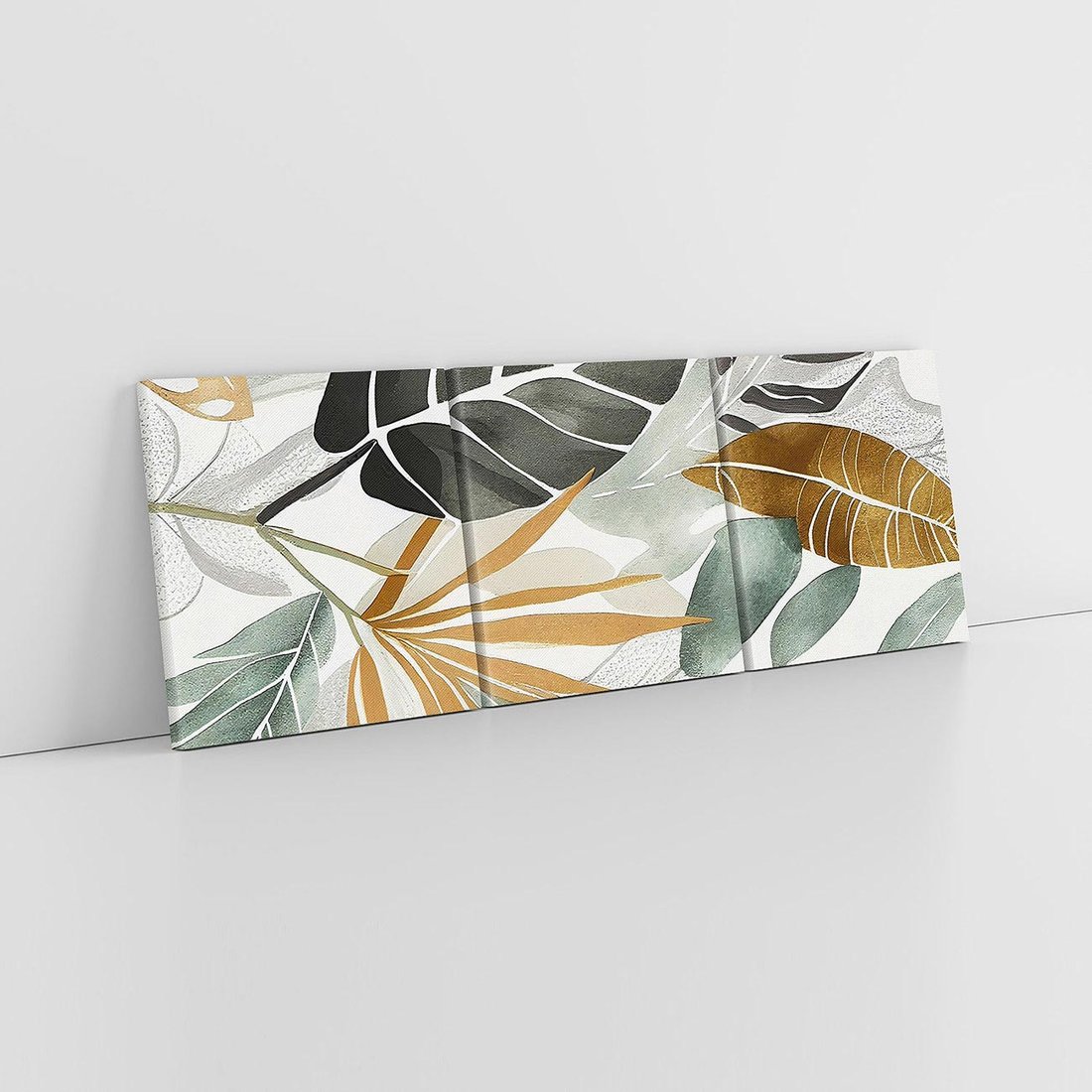Obraz na płótnie 90x30 - Współbrzmienie wewnętrznego ja - kompozycja z tropikalnych liści, stonowane kolory