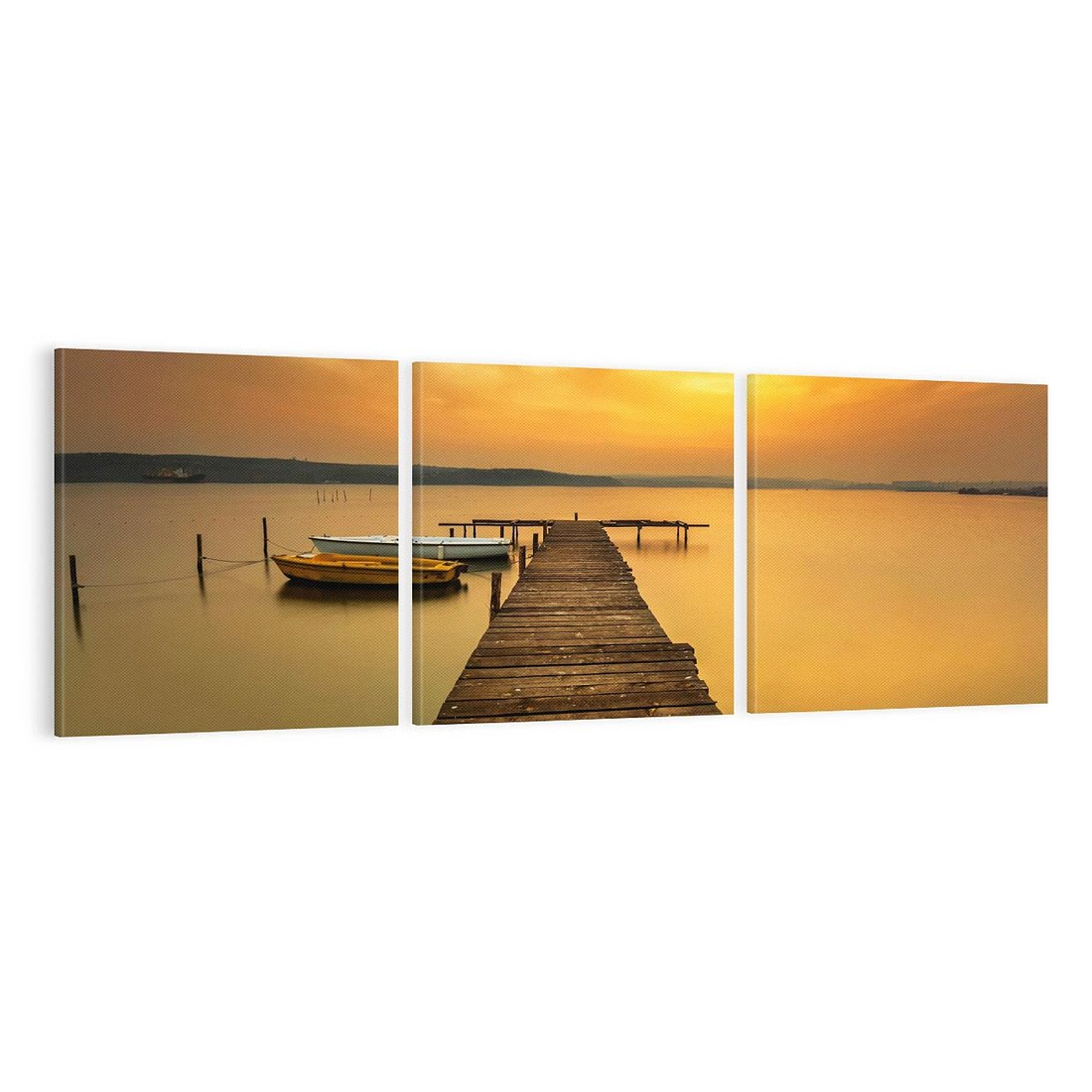 - Obraz na płótnie 90x30 - Zachód słońca nad jeziorem: Piękno natury