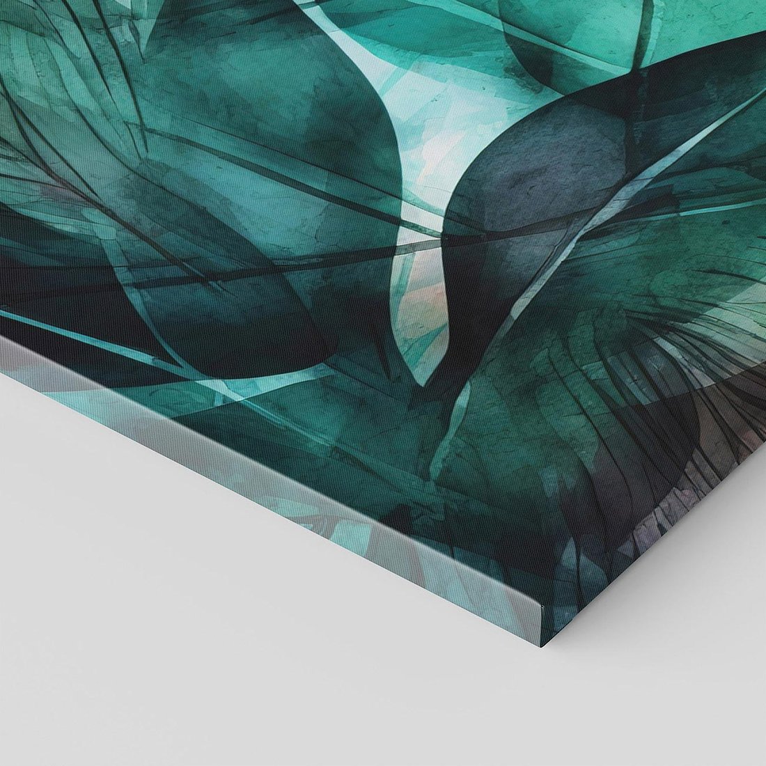 Wybierz to malowidło, aby poczuć magię tropików w swoim wnętrzu. Tropikalne zielone liście palmy i monstery w ciemnej zieleni dodają egzotycznego uroku, tworząc malowniczy akcent na płótnie.