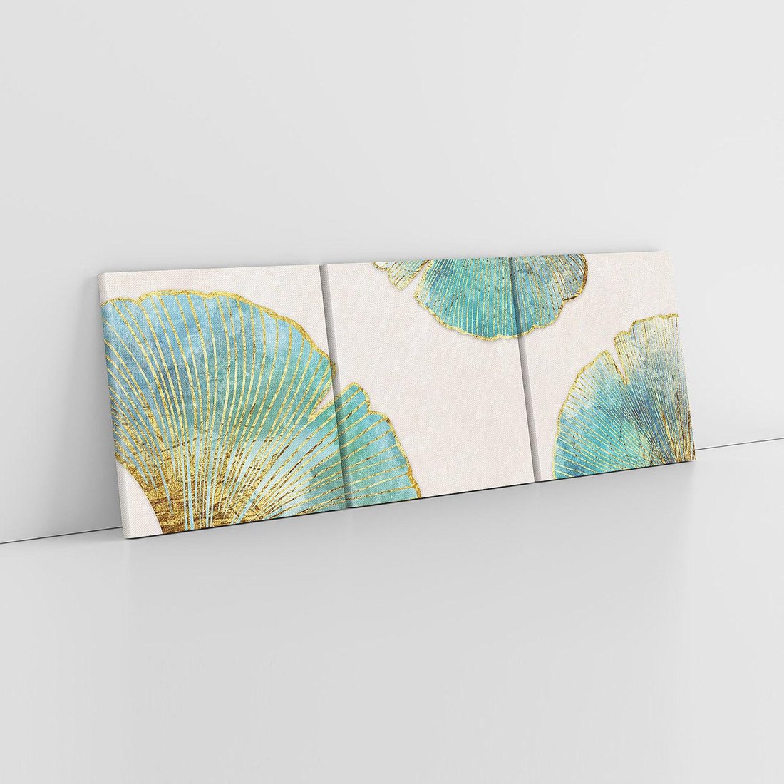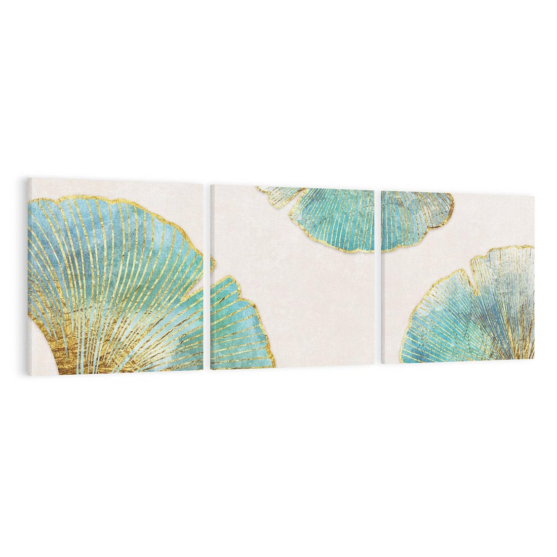 Obraz na płótnie 90x30 - Złota Melodia Liści - złote, turkusowe liście miłorzębu