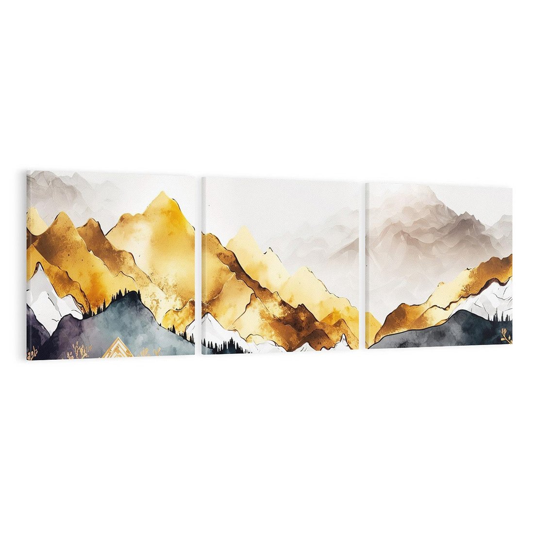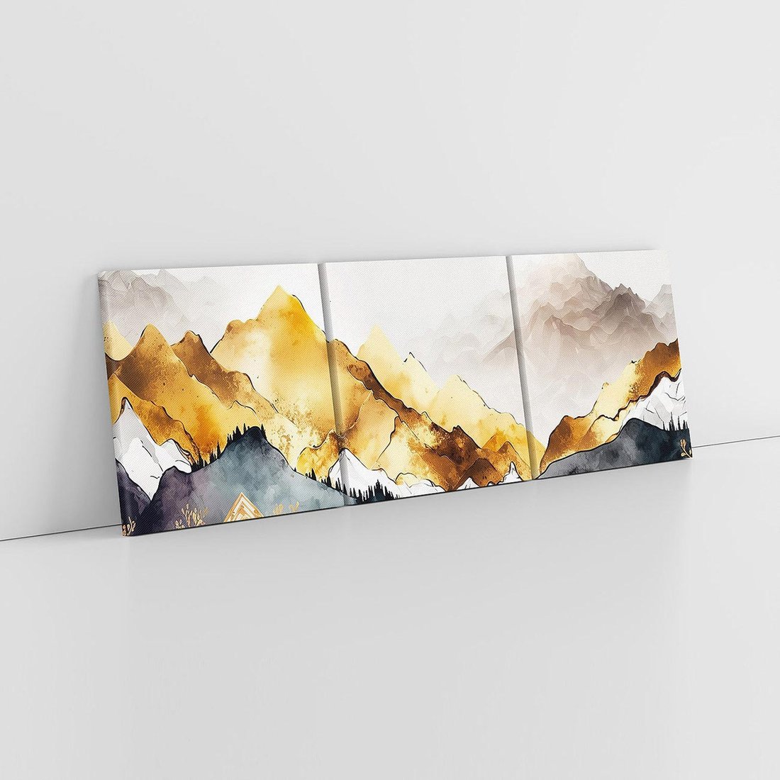 Obraz na płótnie 90x30 - Złote Góry - akwarela, graficzne góry