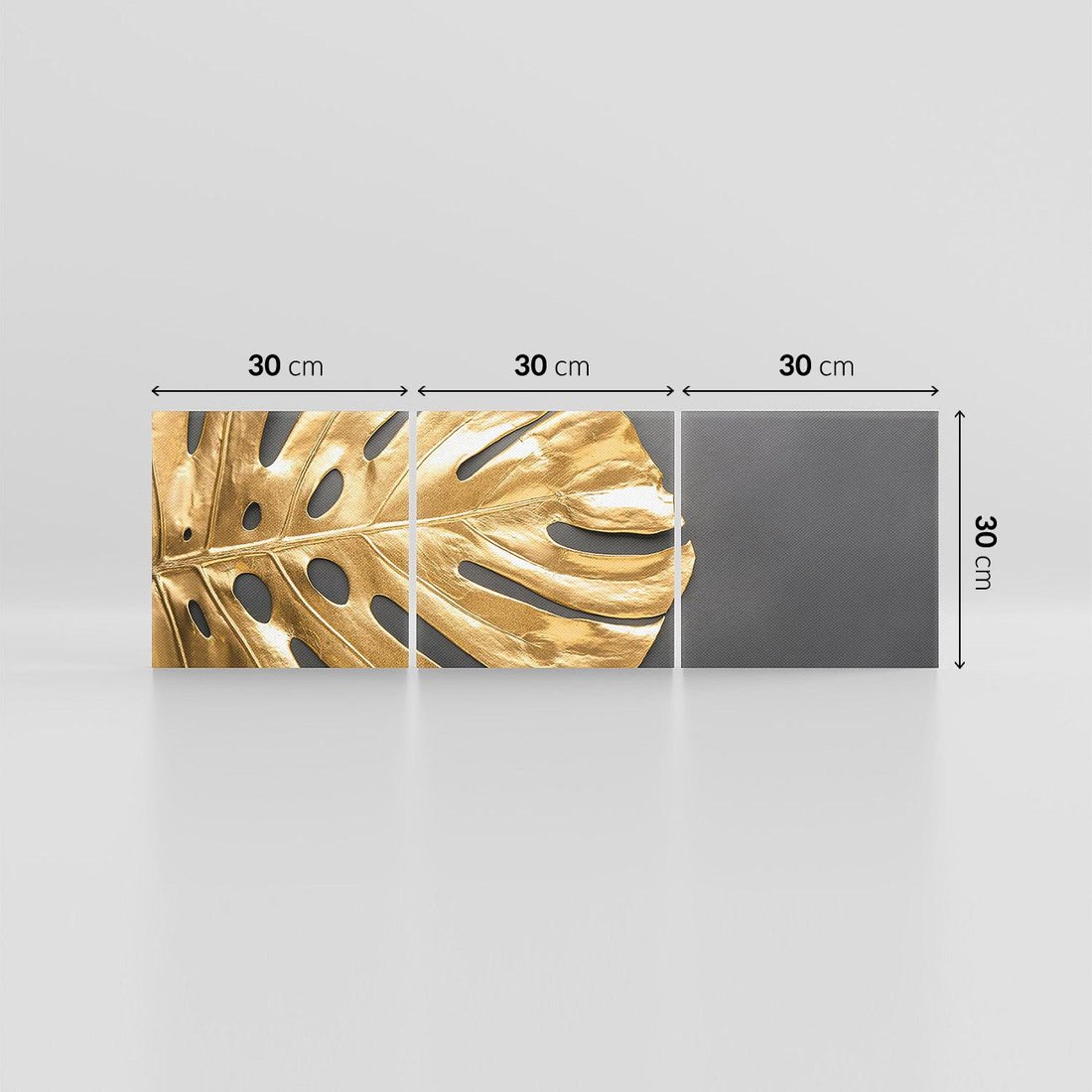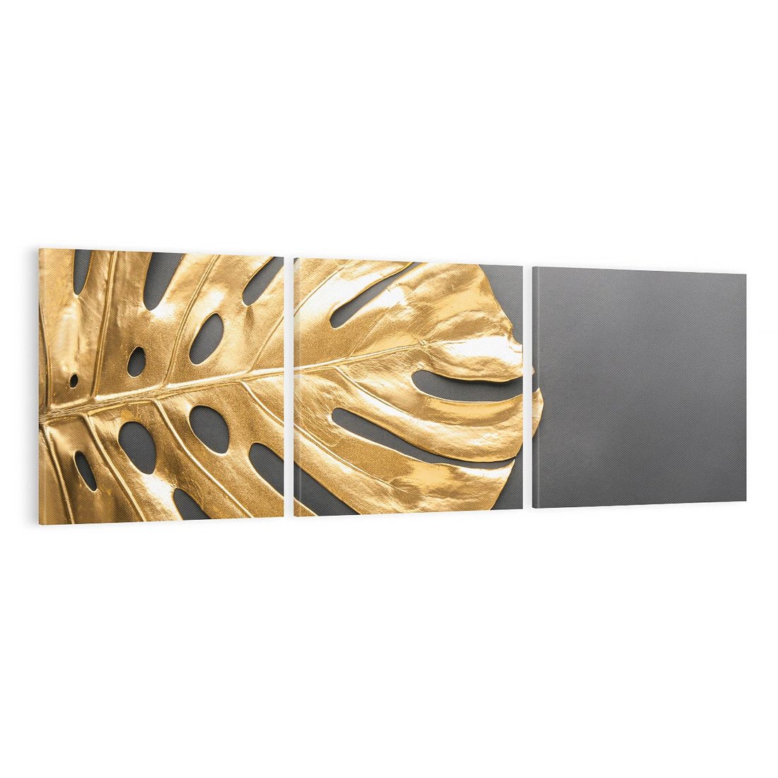 Obraz na płótnie 90x30 - Złoty Liść Monstera - złoty, liść