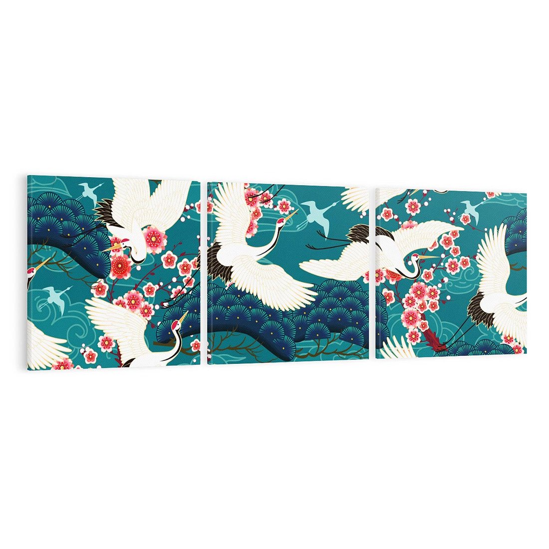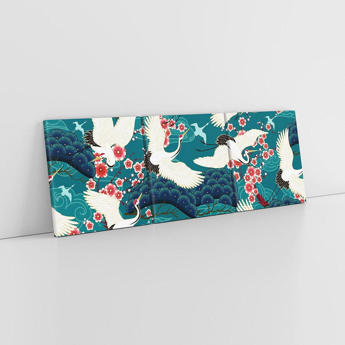 Obraz na płótnie 90x30 - Żurawie Wachlarze - orientalne japońskie żurawie, grafika