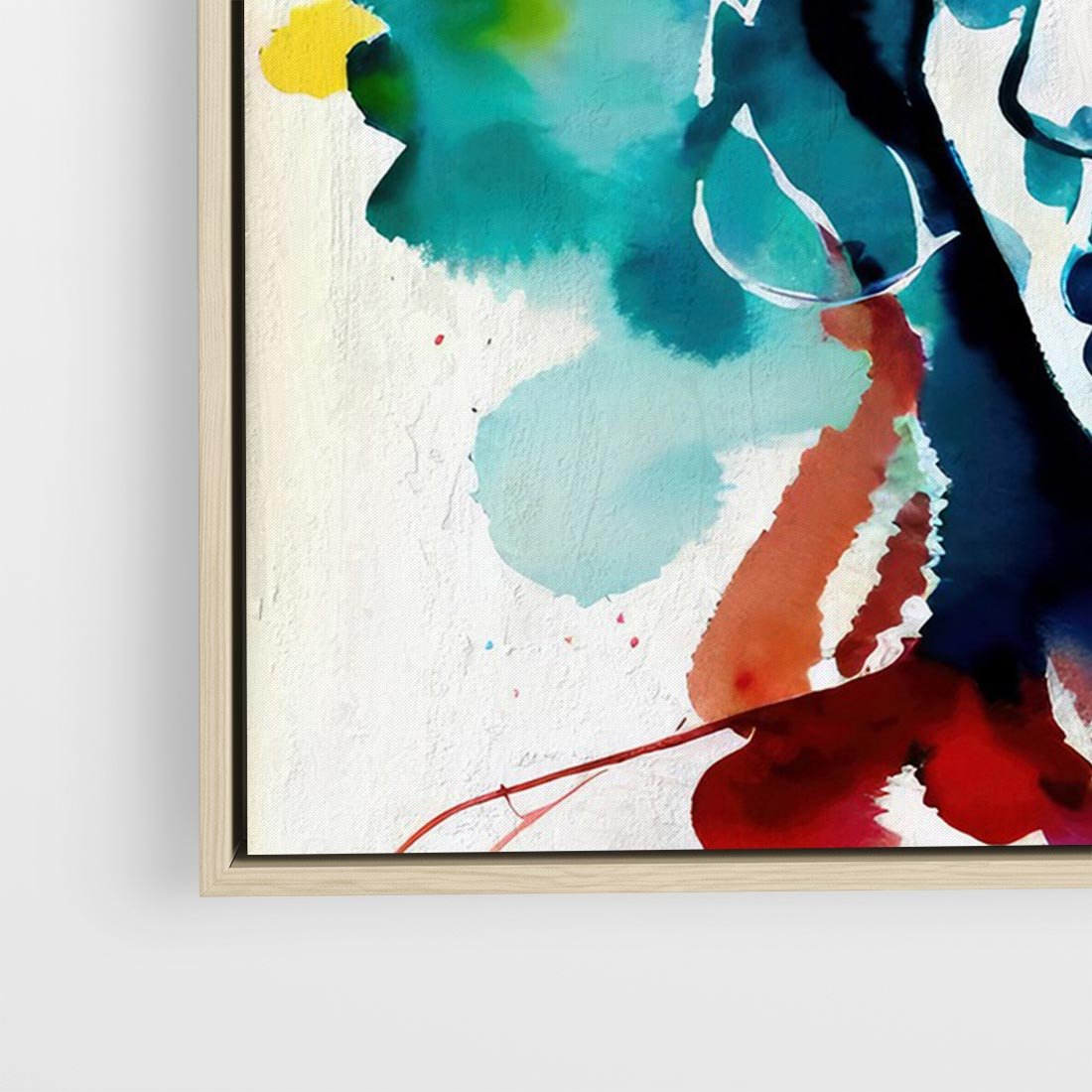 Obraz w ramie 100x70 - Abstrakcyjna ekstaza barw - abstrakcyjny portret kobiety, szkic czarną kreską - rama drewno