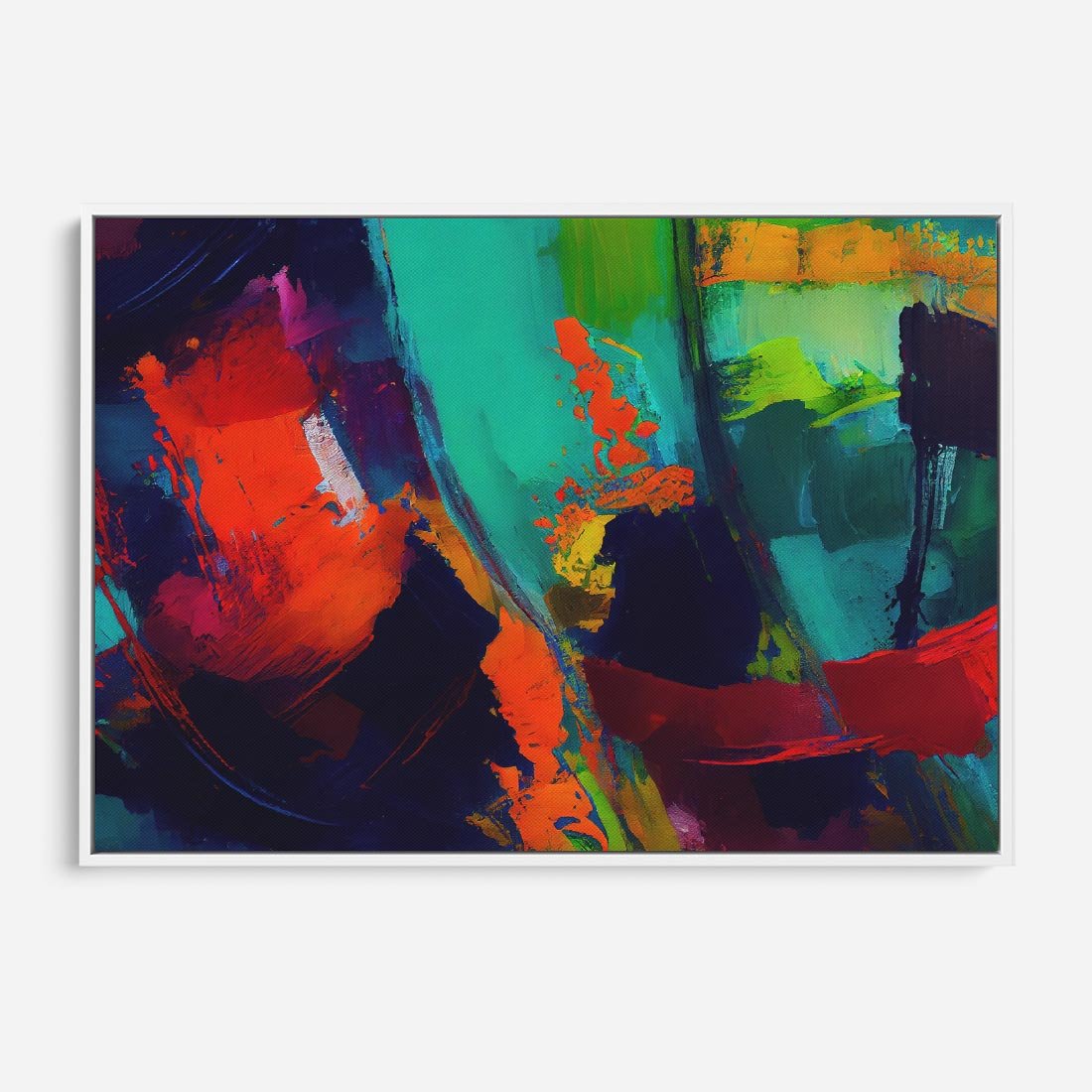 Obraz w ramie 100x70 - Abstrakcyjne wizje czasu - żywe radosne kolory, plamy kolory - rama biała