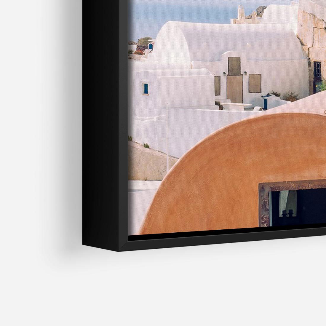 Obraz w ramie 100x70 - Błękit Morza i Białe Domki - Santorini, wyspa - rama czarna