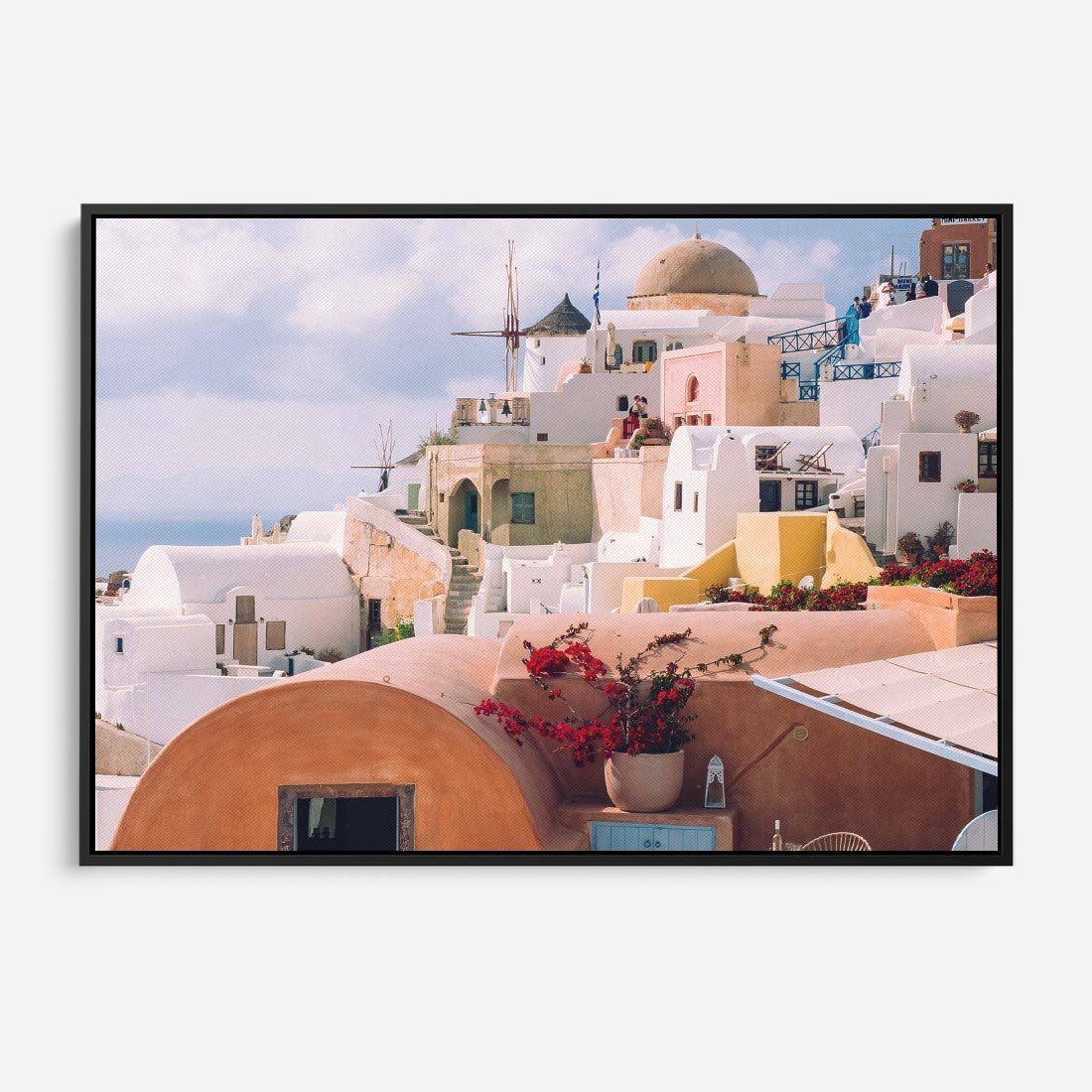 Przenieś się na piękną wyspę Santorini za pomocą obrazu. Poczuj atmosferę greckiej architektury i błękitu morza, dodając do swojego wnętrza nutkę śródziemnomorskiego uroku.