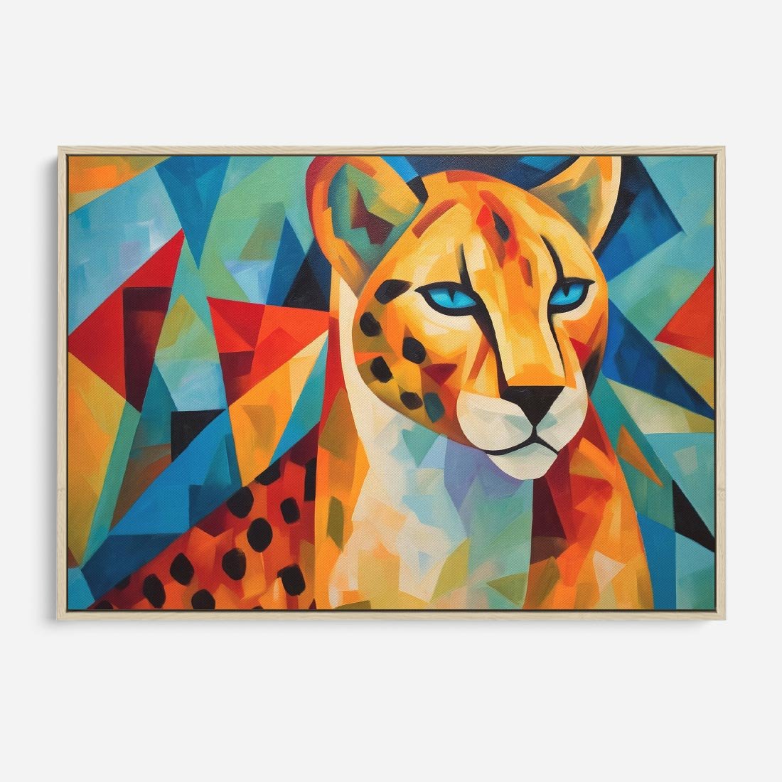 Obraz w ramie 100x70 - Dzikie Piękno - abstrakcyjny portret geparda, intensywne kolory - rama drewno