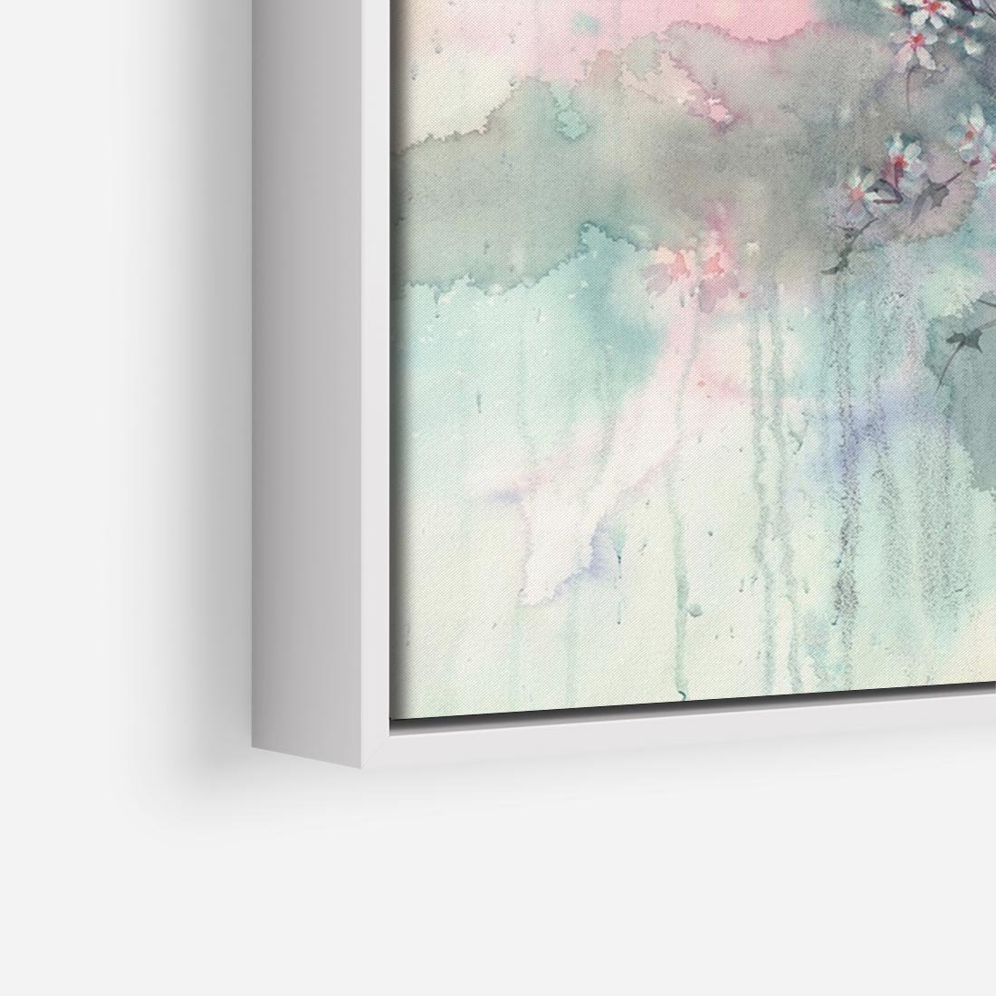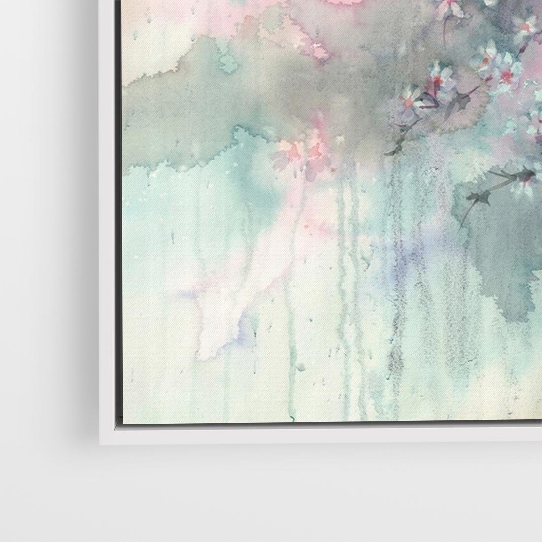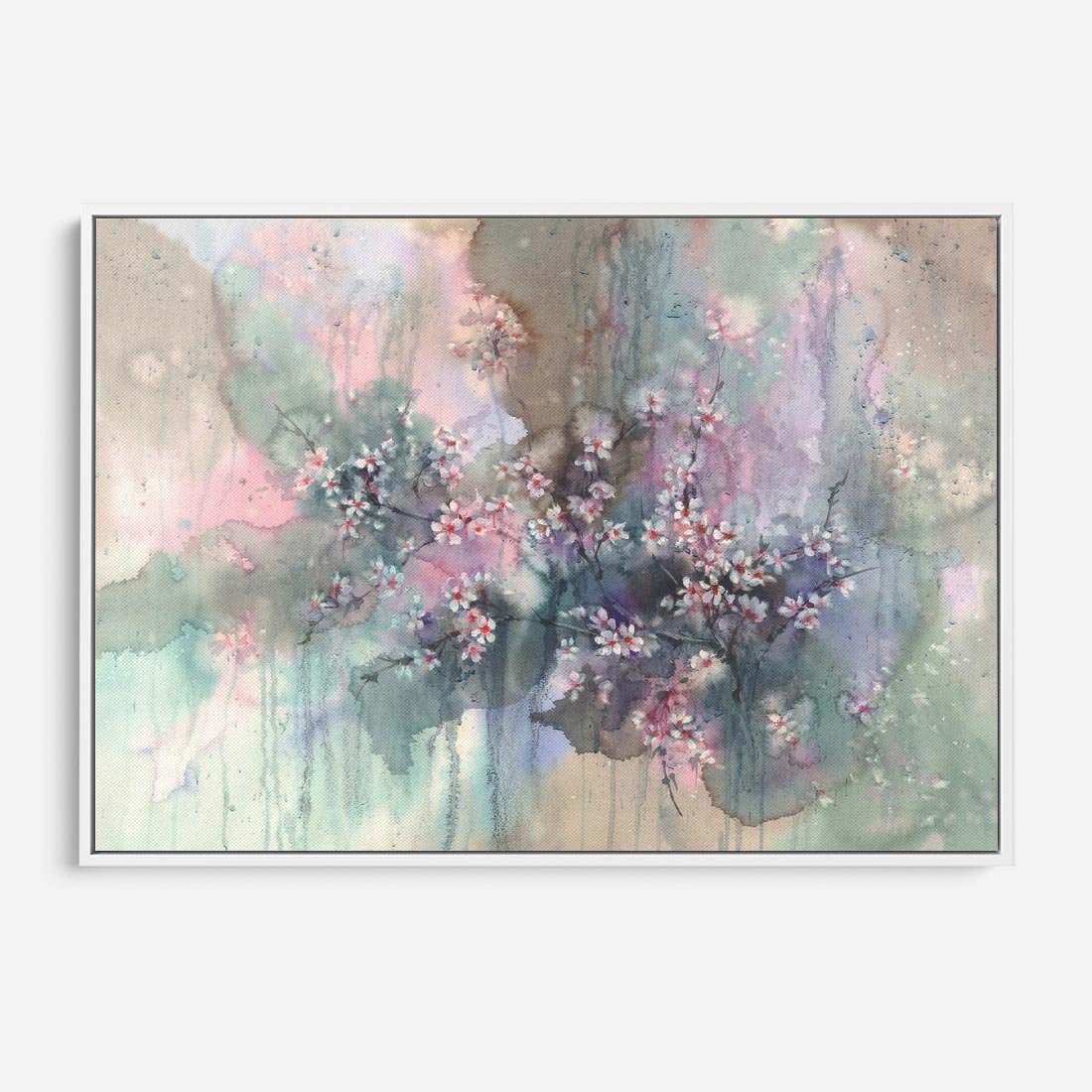 Obraz w ramie 100x70 - Efemeryczne Kwitnienie Drzew - akwarela, rozmyte pastelowe tłó - rama biała