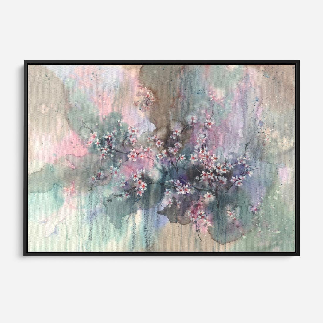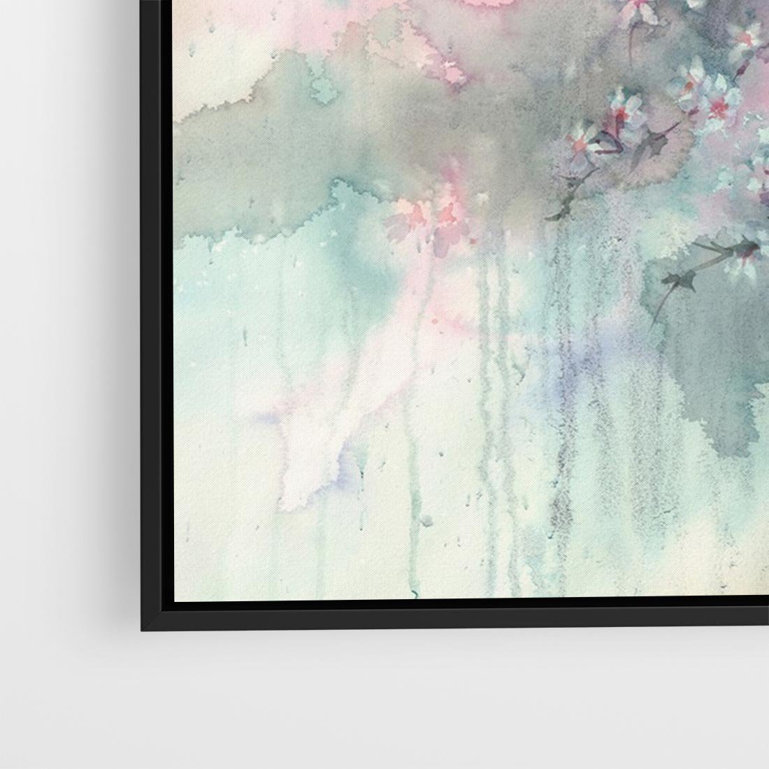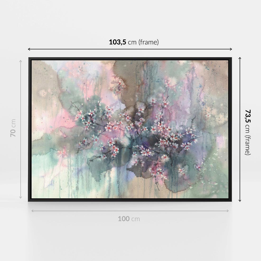 Obraz w ramie 100x70 - Efemeryczne Kwitnienie Drzew - akwarela, rozmyte pastelowe tłó - rama czarna