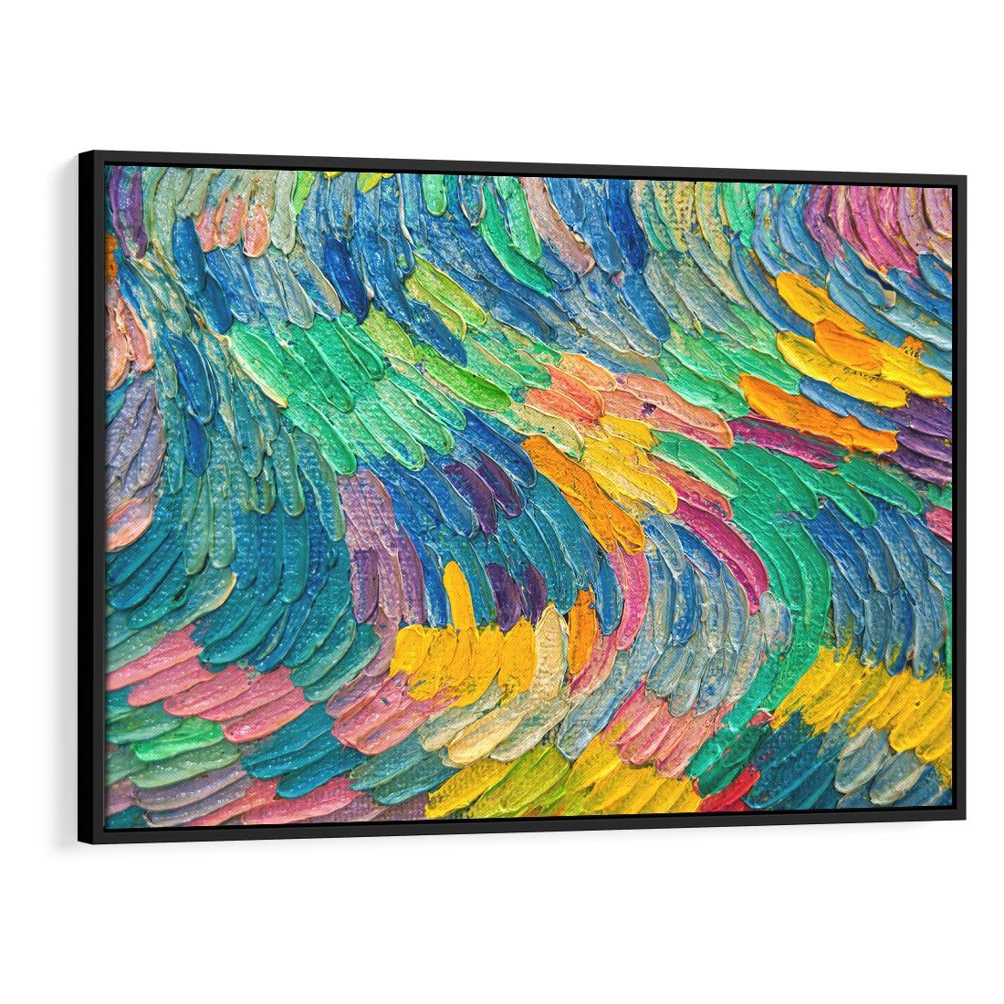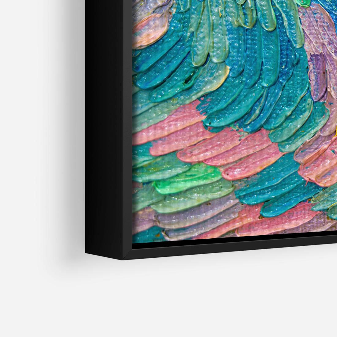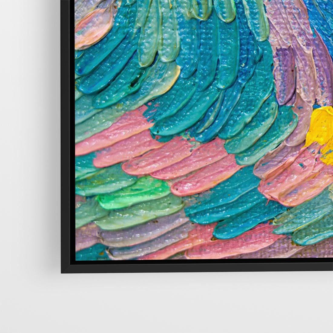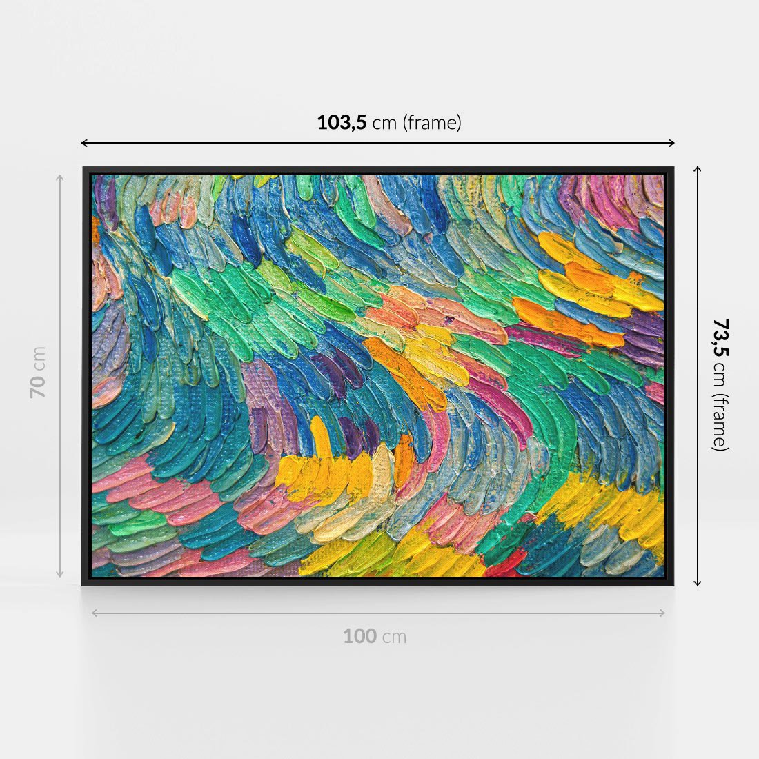 Obraz w ramie 100x70 - Egzotyczne Pióra - abstrakcyjne dzieło, farby olejne - rama czarna